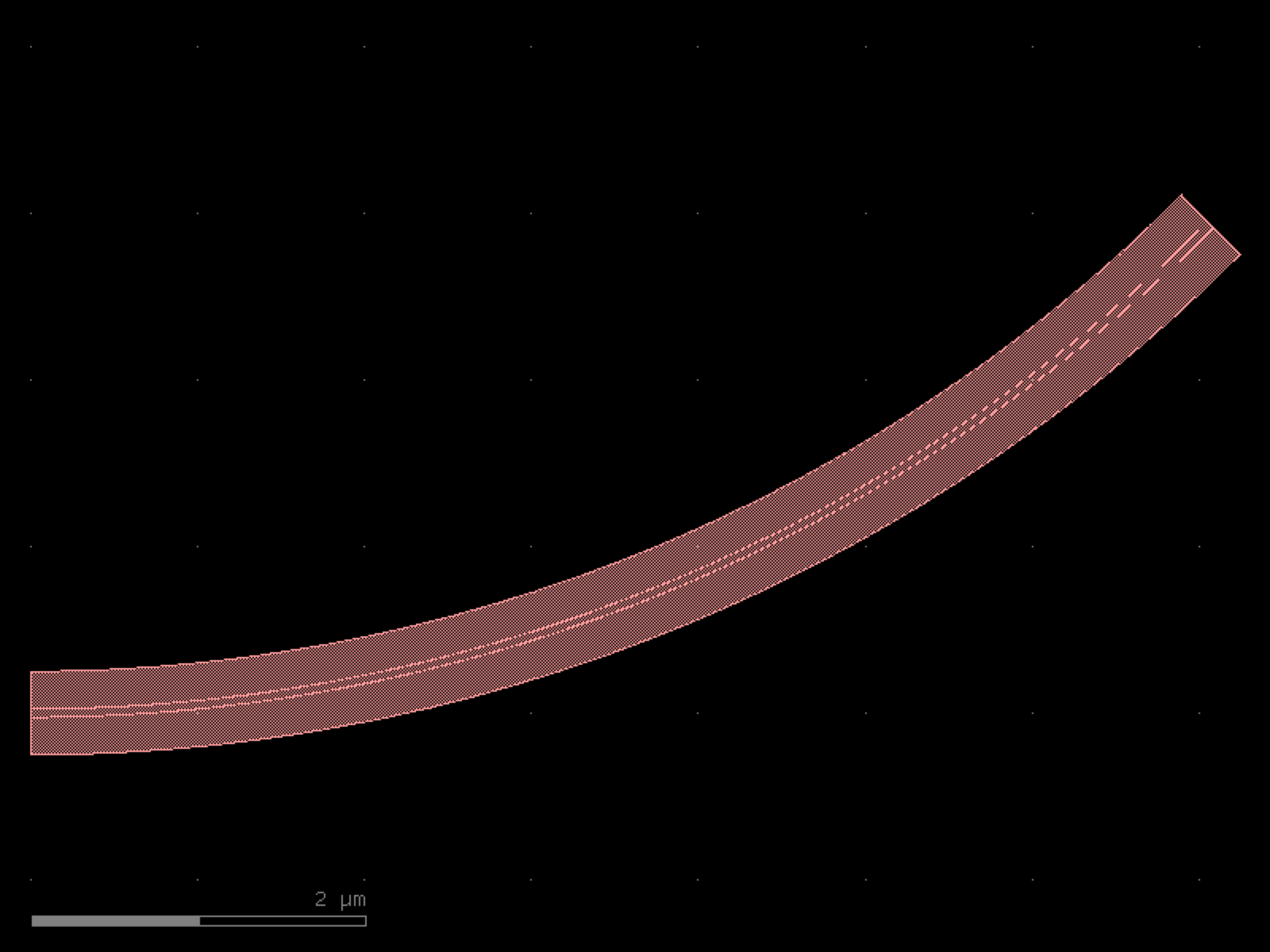 import gdsfactory as gf xs = gf.cross_section.slot(width=0.5, slot_width=0.05, layer='WG') p = gf.path.arc(radius=10, angle=45) c = p.extrude(xs) c.plot()