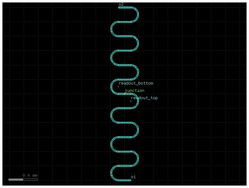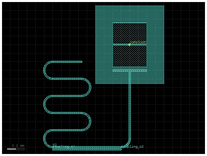 unimon()qubit with a half-circle coupler placed at a specified gap for proximity coupling to a readout resonator.- Parameters: