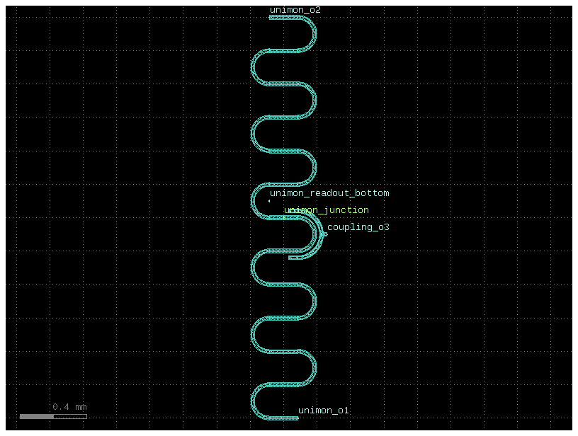A gdsfactory component with the unimon and half-circle coupler.