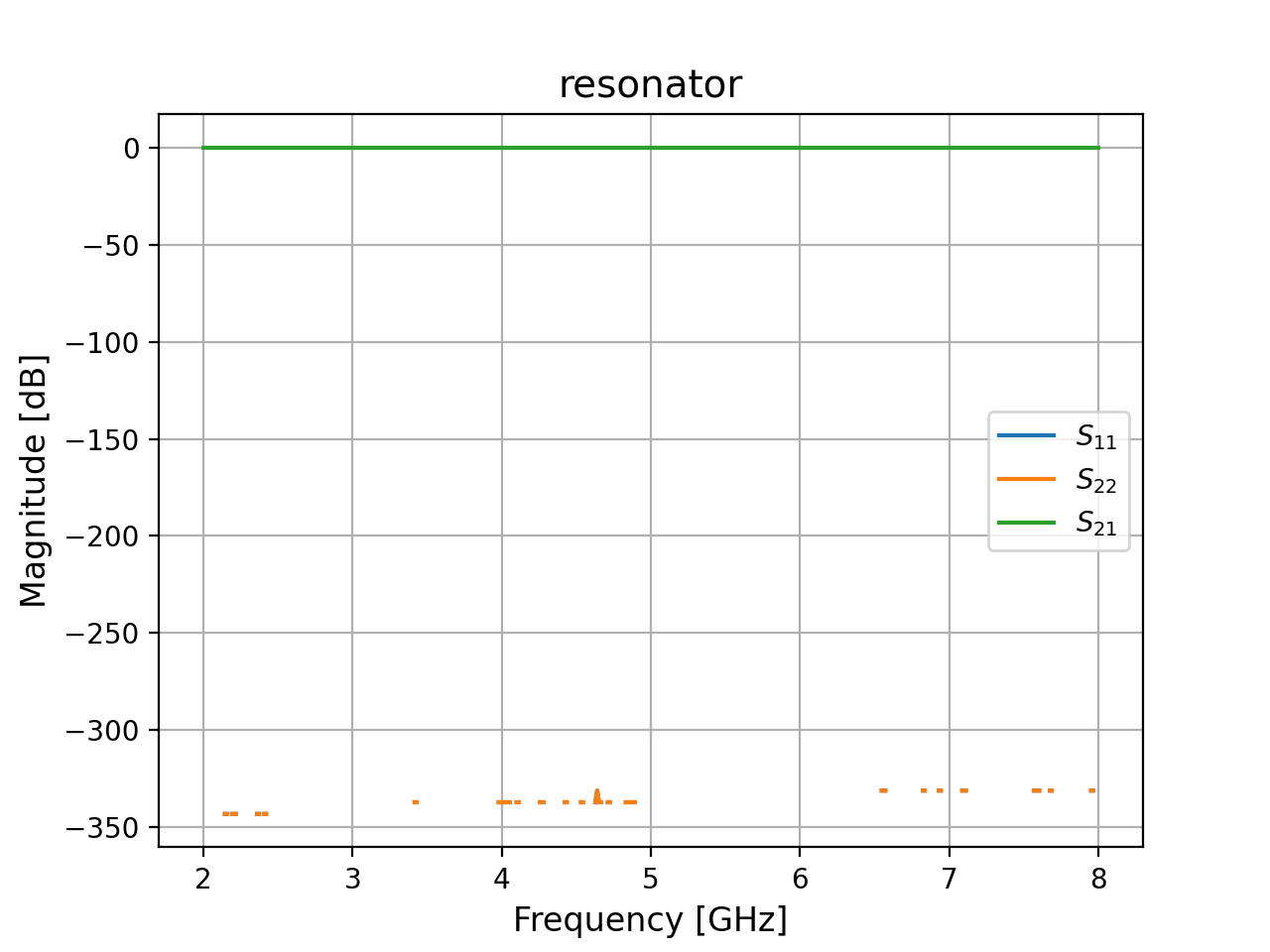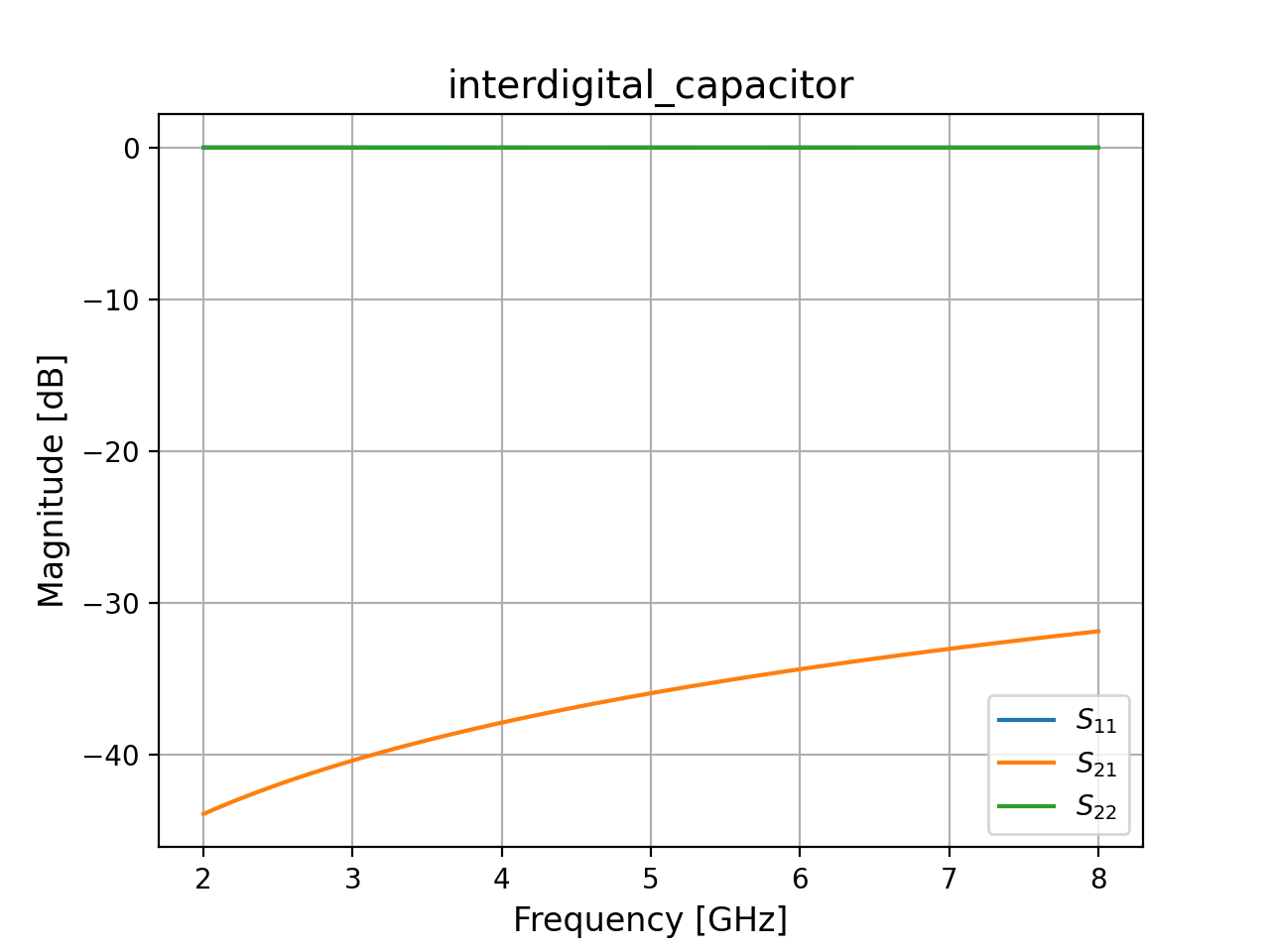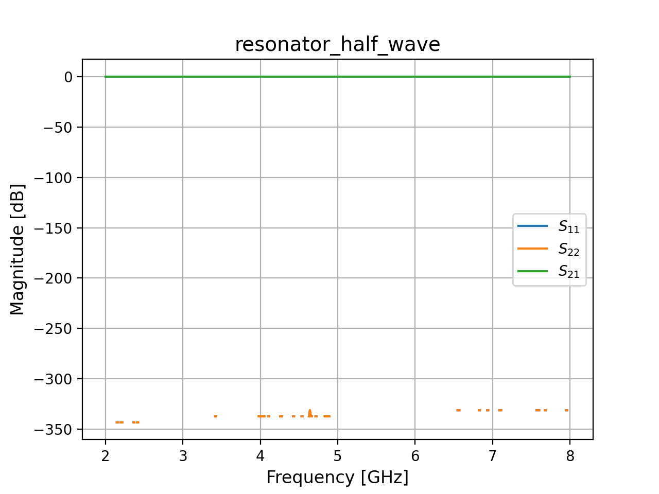 o2is internally shorted and should not be used. It seems to be a Sax limitation that we need to define at least two ports.- Parameters: