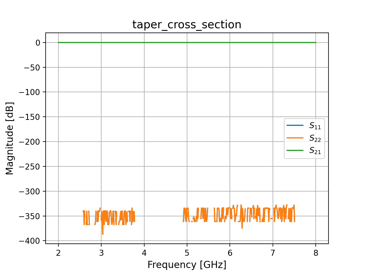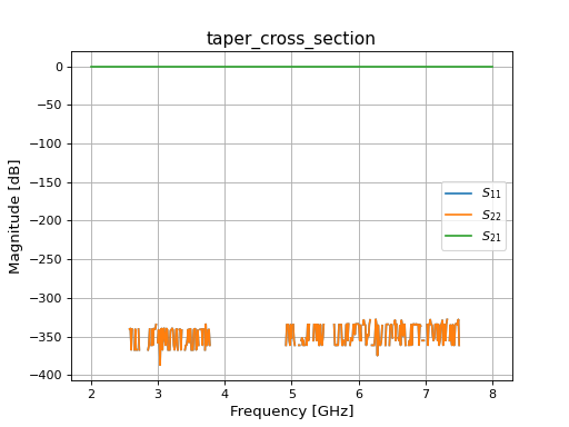 S-parameter model for a cross-section taper using linear interpolation.