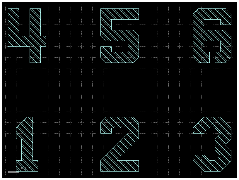 Test chip with ground plane fill patterns and chip edges.