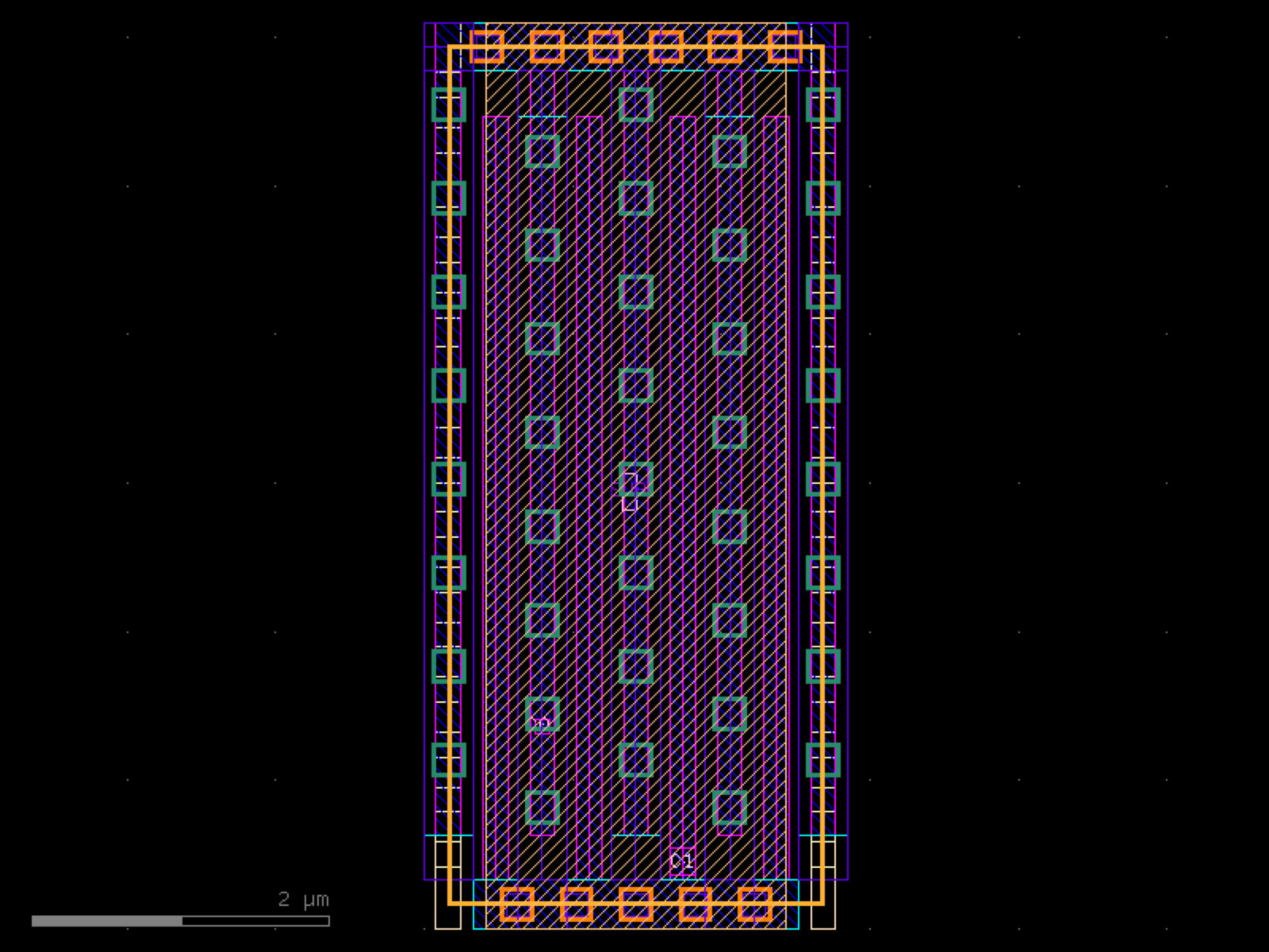 import sky130 c = sky130.components.sky130_fd_pr__cap_vpp_02p9x06p1_m1m2m3m4_shieldl1_fingercap2() c.plot()