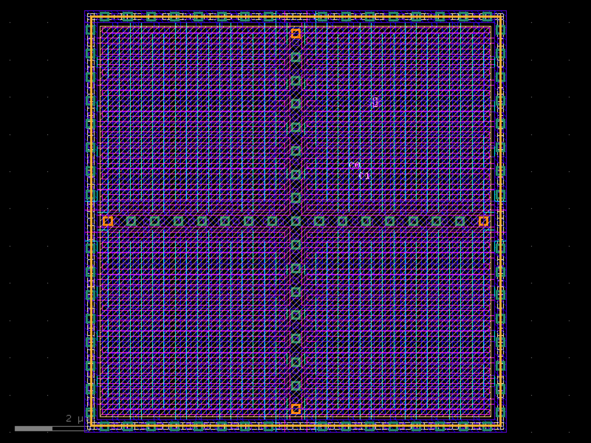 import sky130 c = sky130.components.sky130_fd_pr__cap_vpp_11p3x11p3_m1m2m3m4_shieldl1_wafflecap() c.plot()