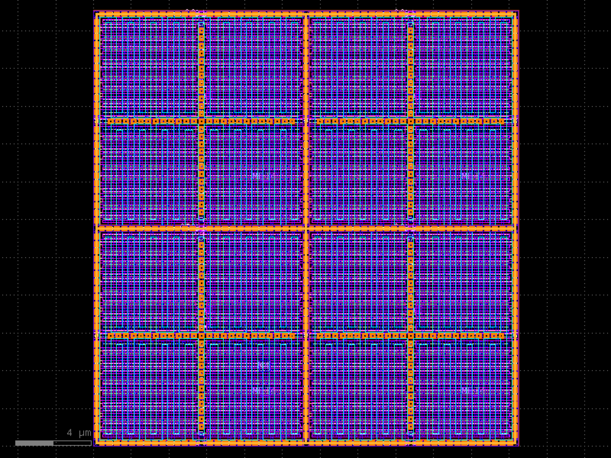 import sky130 c = sky130.components.sky130_fd_pr__cap_vpp_11p5x11p7_l1m1m2m3_shieldpom4_top() c.plot()
