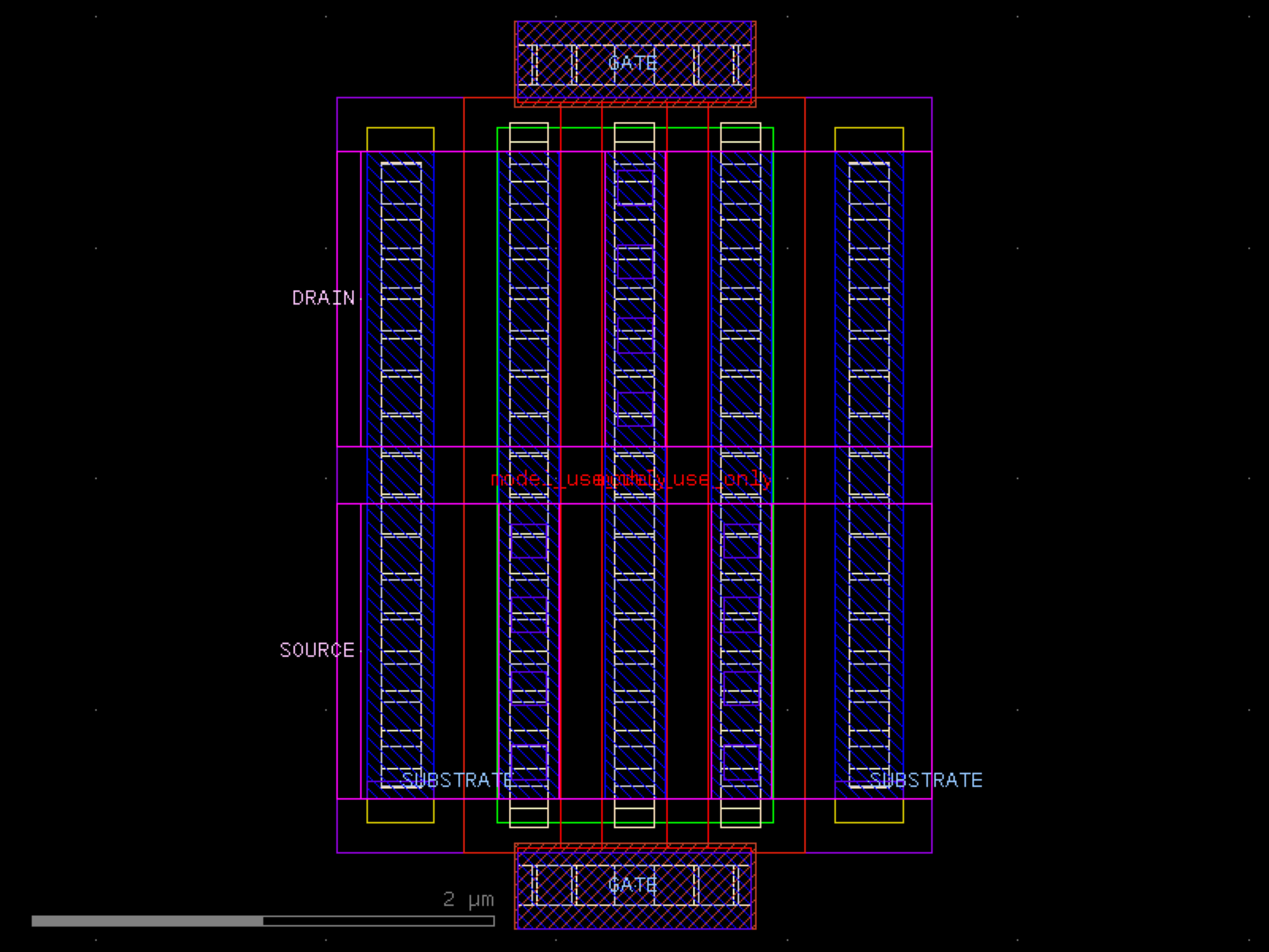 sky130.cells.sky130_fd_pr__rf_nfet_01v8_aM02W3p00L0p18# sky130.cells.sky130_fd_pr__rf_nfet_01v8_aM02W3p00L0p18()[source]# Returns sky130_fd_pr__rf_nfet_01v8_aM02W3p00L0p18 fixed cell. import sky130 c = sky130.components.sky130_fd_pr__rf_nfet_01v8_aM02W3p00L0p18() c.plot() (Source code, png, hires.png, pdf) Return type: Component