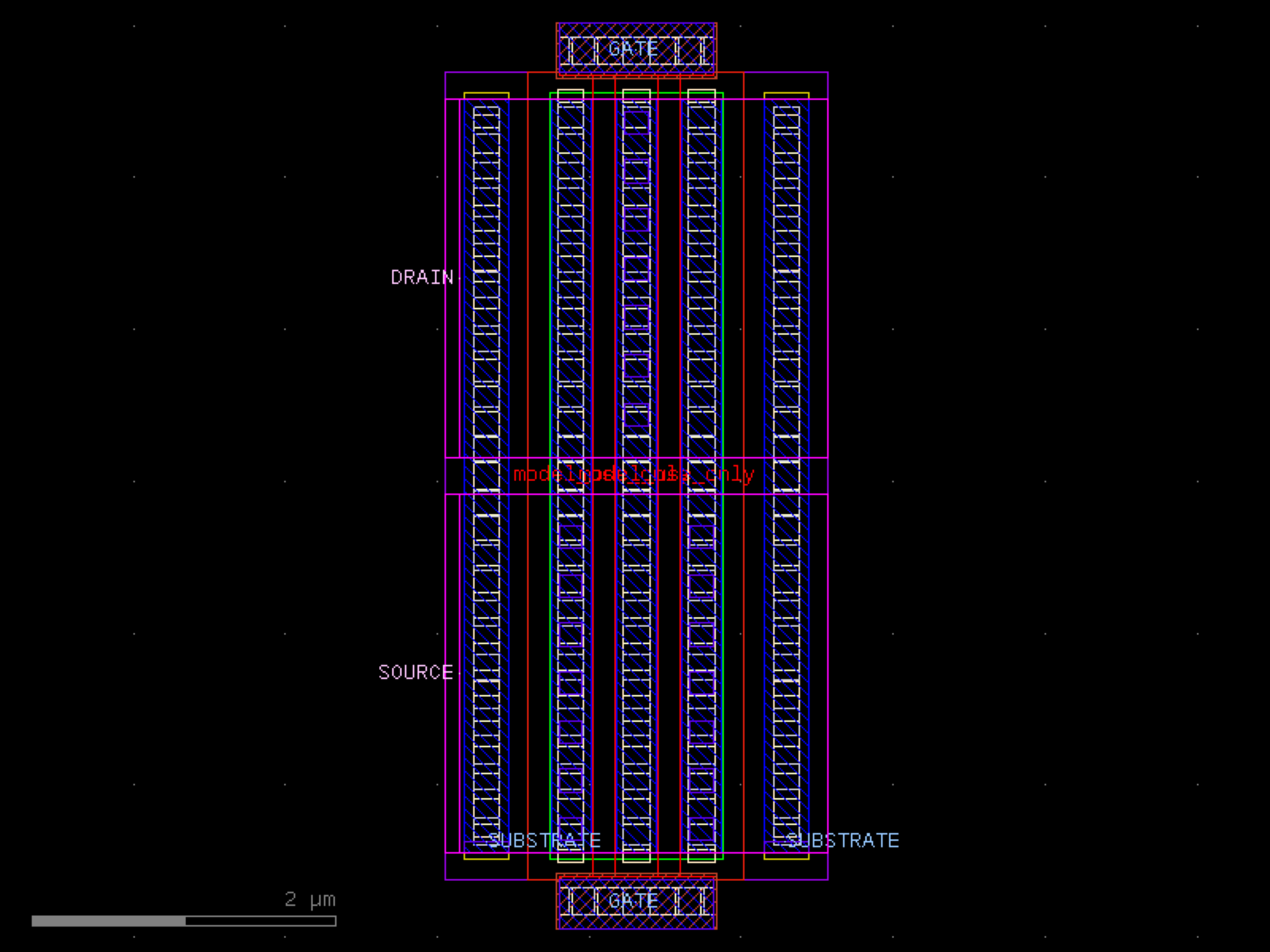 sky130.cells.sky130_fd_pr__rf_nfet_01v8_aM02W5p00L0p15# sky130.cells.sky130_fd_pr__rf_nfet_01v8_aM02W5p00L0p15()[source]# Returns sky130_fd_pr__rf_nfet_01v8_aM02W5p00L0p15 fixed cell. import sky130 c = sky130.components.sky130_fd_pr__rf_nfet_01v8_aM02W5p00L0p15() c.plot() (Source code, png, hires.png, pdf) Return type: Component