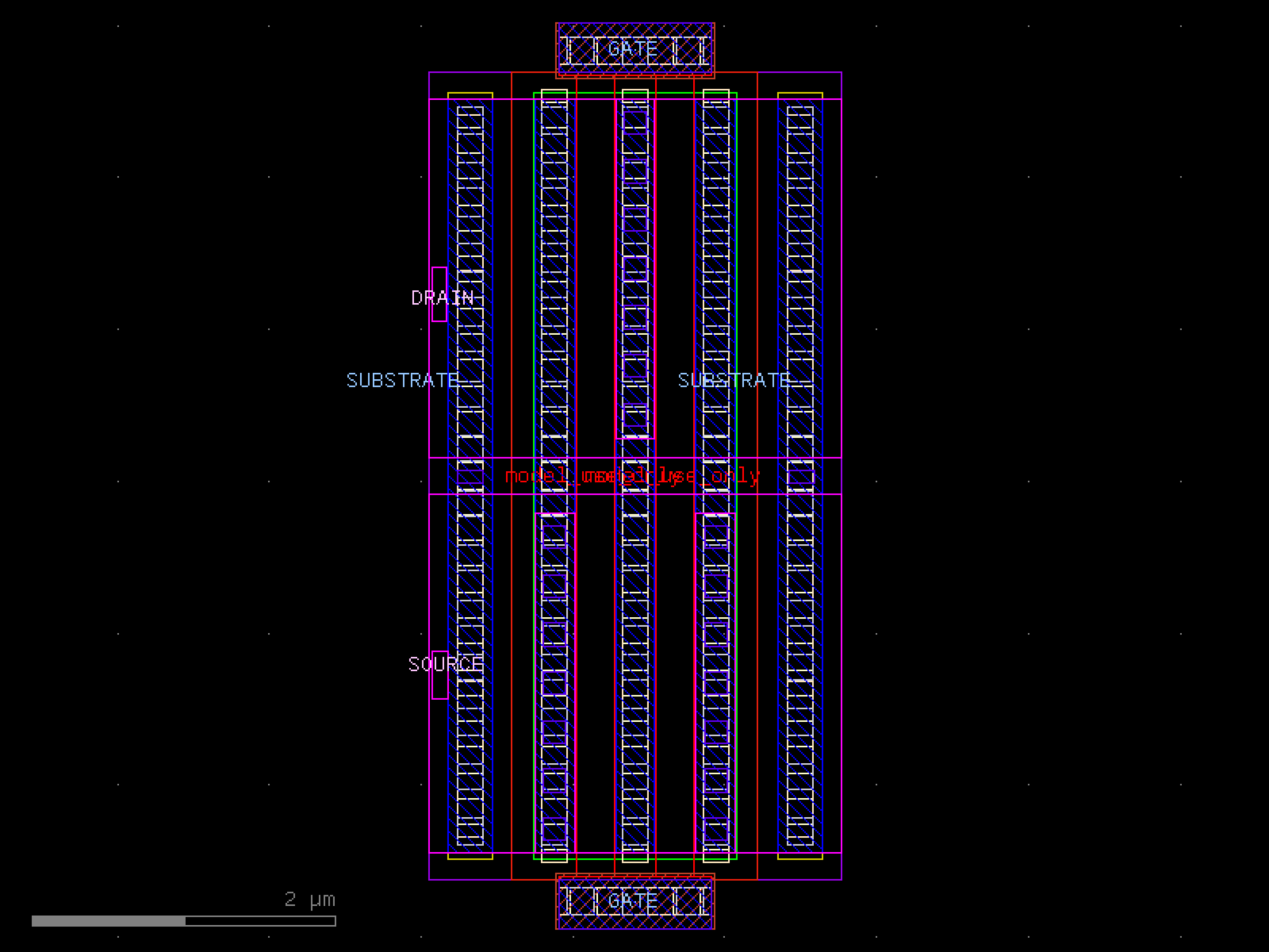 sky130.cells.sky130_fd_pr__rf_nfet_01v8_aM02W5p00L0p25# sky130.cells.sky130_fd_pr__rf_nfet_01v8_aM02W5p00L0p25()[source]# Returns sky130_fd_pr__rf_nfet_01v8_aM02W5p00L0p25 fixed cell. import sky130 c = sky130.components.sky130_fd_pr__rf_nfet_01v8_aM02W5p00L0p25() c.plot() (Source code, png, hires.png, pdf) Return type: Component