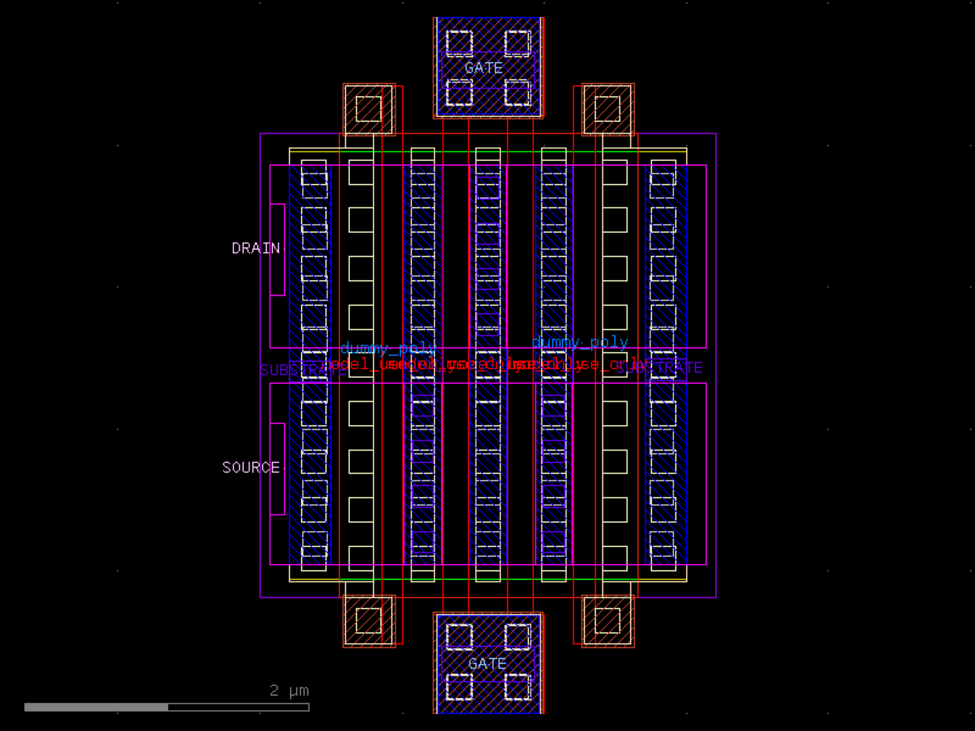 sky130.cells.sky130_fd_pr__rf_nfet_01v8_bM02W3p00L0p18# sky130.cells.sky130_fd_pr__rf_nfet_01v8_bM02W3p00L0p18()[source]# Returns sky130_fd_pr__rf_nfet_01v8_bM02W3p00L0p18 fixed cell. import sky130 c = sky130.components.sky130_fd_pr__rf_nfet_01v8_bM02W3p00L0p18() c.plot() (Source code, png, hires.png, pdf) Return type: Component