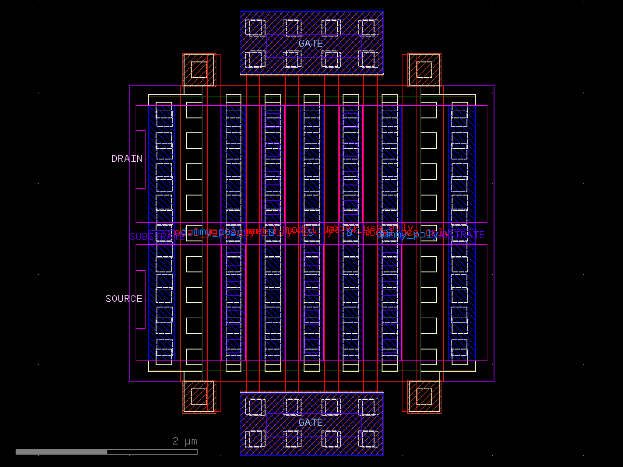 sky130.cells.sky130_fd_pr__rf_nfet_01v8_bM04W3p00L0p15# sky130.cells.sky130_fd_pr__rf_nfet_01v8_bM04W3p00L0p15()[source]# Returns sky130_fd_pr__rf_nfet_01v8_bM04W3p00L0p15 fixed cell. import sky130 c = sky130.components.sky130_fd_pr__rf_nfet_01v8_bM04W3p00L0p15() c.plot() (Source code, png, hires.png, pdf) Return type: Component