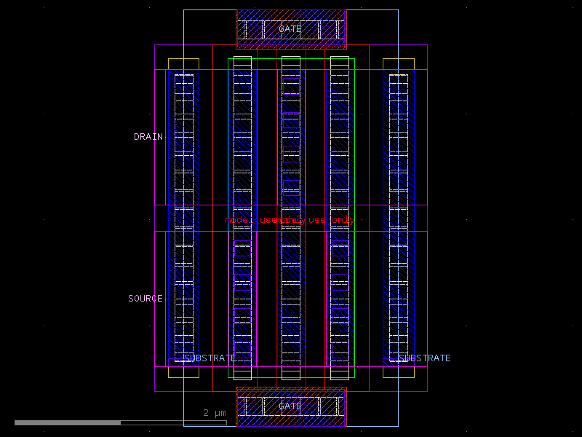 sky130.cells.sky130_fd_pr__rf_nfet_01v8_lvt_aM02W3p00L0p18# sky130.cells.sky130_fd_pr__rf_nfet_01v8_lvt_aM02W3p00L0p18()[source]# Returns sky130_fd_pr__rf_nfet_01v8_lvt_aM02W3p00L0p18 fixed cell. import sky130 c = sky130.components.sky130_fd_pr__rf_nfet_01v8_lvt_aM02W3p00L0p18() c.plot() (Source code, png, hires.png, pdf) Return type: Component