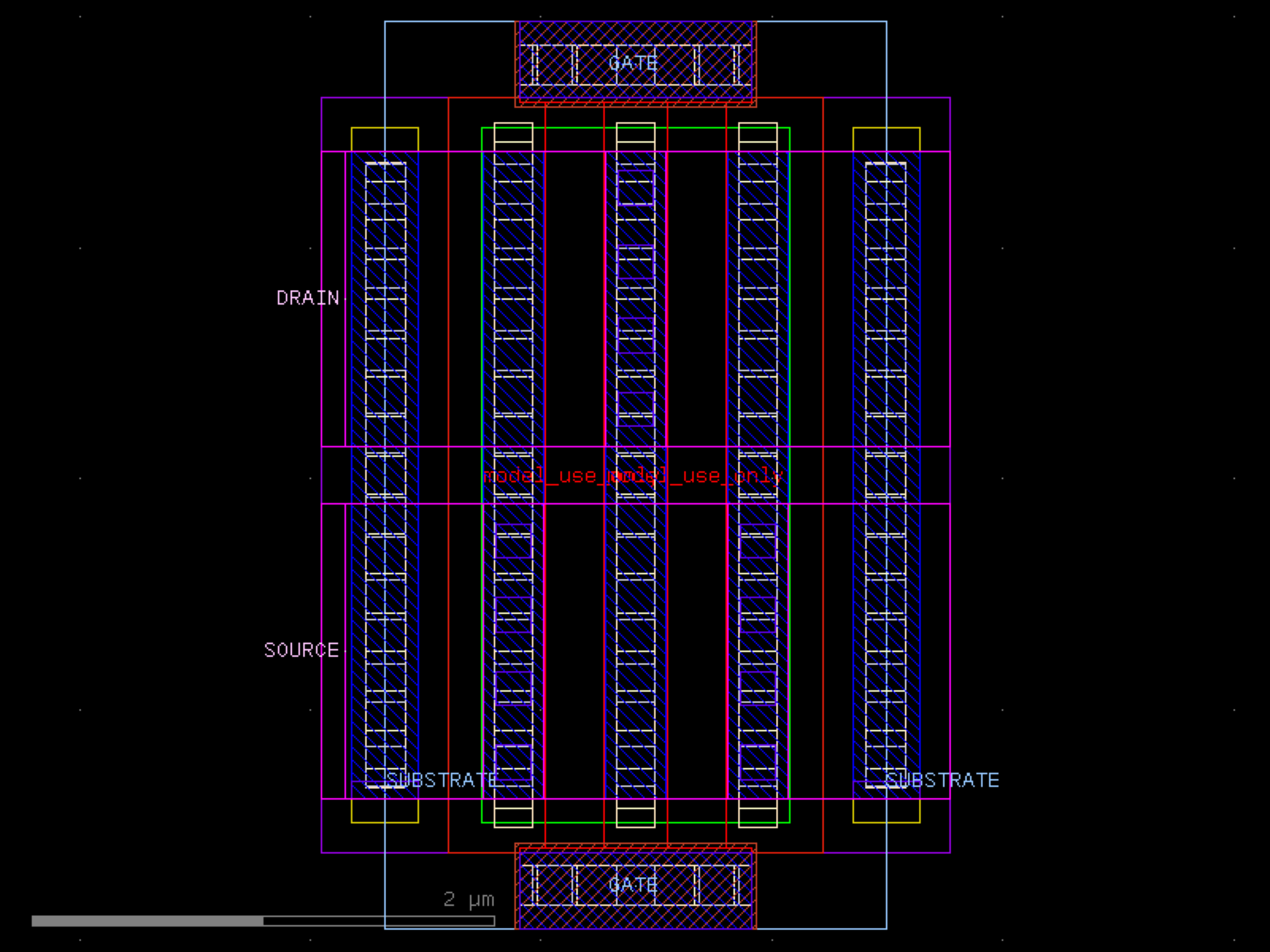 sky130.cells.sky130_fd_pr__rf_nfet_01v8_lvt_aM02W3p00L0p25# sky130.cells.sky130_fd_pr__rf_nfet_01v8_lvt_aM02W3p00L0p25()[source]# Returns sky130_fd_pr__rf_nfet_01v8_lvt_aM02W3p00L0p25 fixed cell. import sky130 c = sky130.components.sky130_fd_pr__rf_nfet_01v8_lvt_aM02W3p00L0p25() c.plot() (Source code, png, hires.png, pdf) Return type: Component