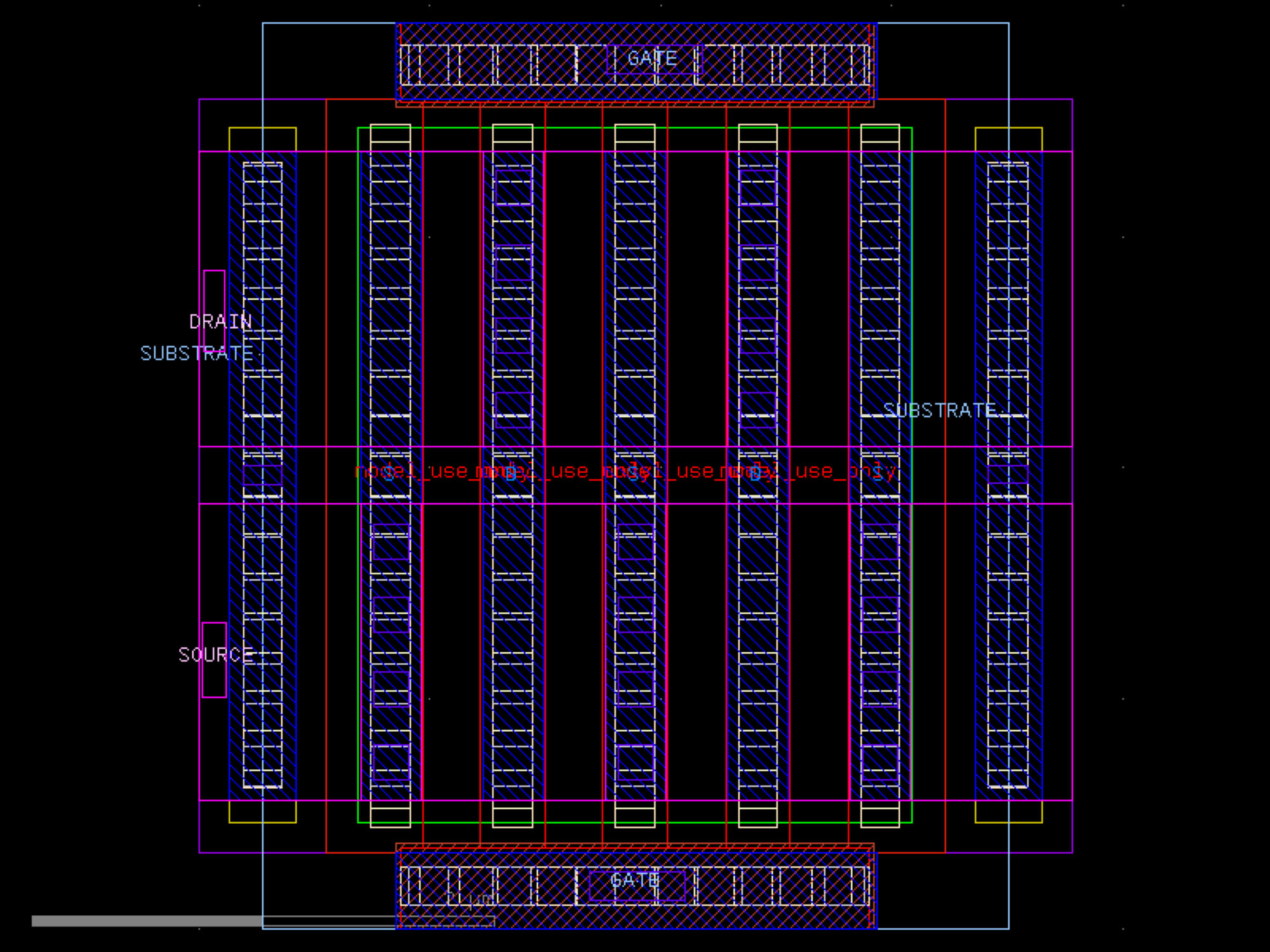 sky130.cells.sky130_fd_pr__rf_nfet_01v8_lvt_aM04W3p00L0p25# sky130.cells.sky130_fd_pr__rf_nfet_01v8_lvt_aM04W3p00L0p25()[source]# Returns sky130_fd_pr__rf_nfet_01v8_lvt_aM04W3p00L0p25 fixed cell. import sky130 c = sky130.components.sky130_fd_pr__rf_nfet_01v8_lvt_aM04W3p00L0p25() c.plot() (Source code, png, hires.png, pdf) Return type: Component