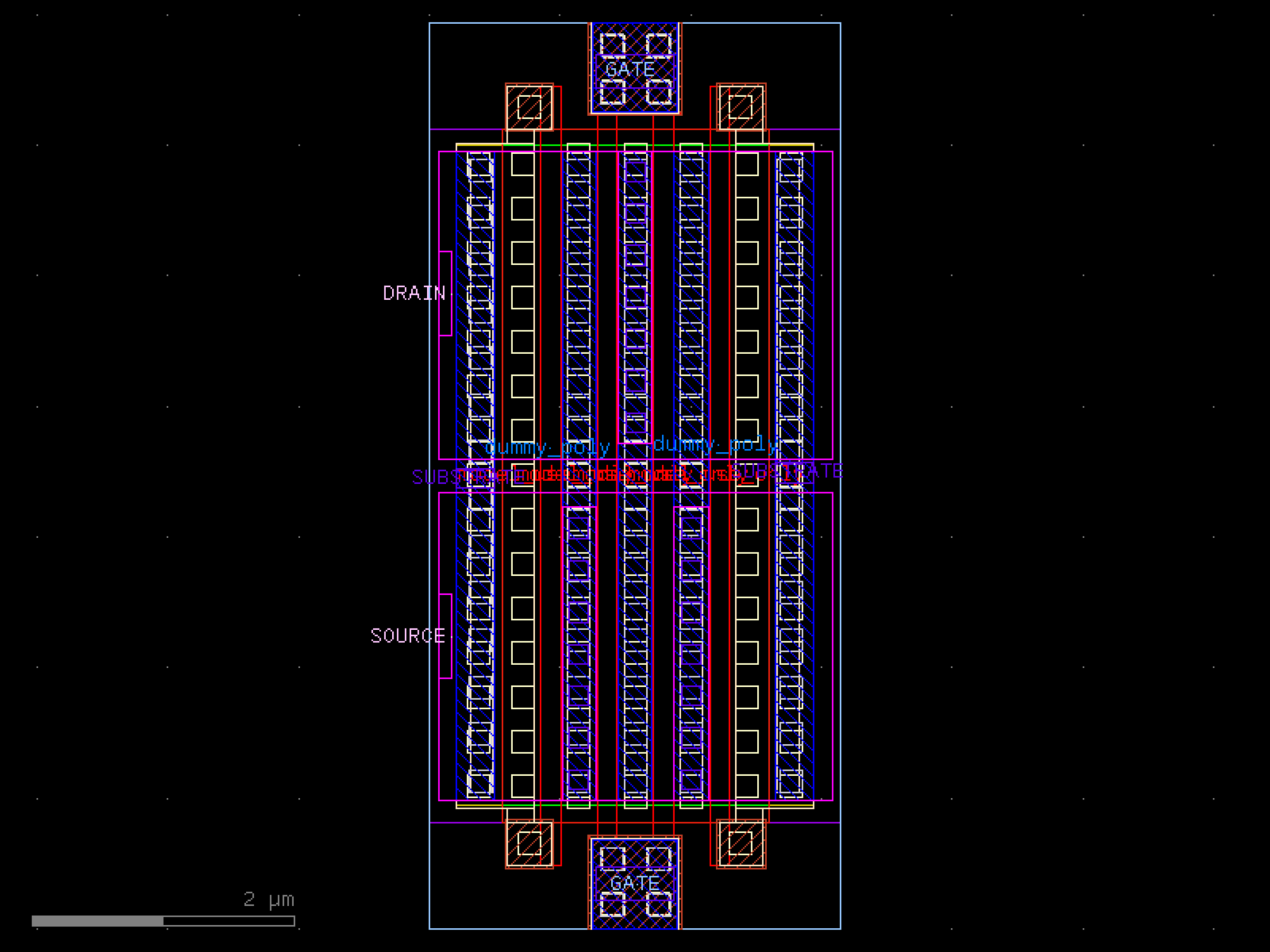 sky130.cells.sky130_fd_pr__rf_nfet_01v8_lvt_bM02W5p00L0p15# sky130.cells.sky130_fd_pr__rf_nfet_01v8_lvt_bM02W5p00L0p15()[source]# Returns sky130_fd_pr__rf_nfet_01v8_lvt_bM02W5p00L0p15 fixed cell. import sky130 c = sky130.components.sky130_fd_pr__rf_nfet_01v8_lvt_bM02W5p00L0p15() c.plot() (Source code, png, hires.png, pdf) Return type: Component