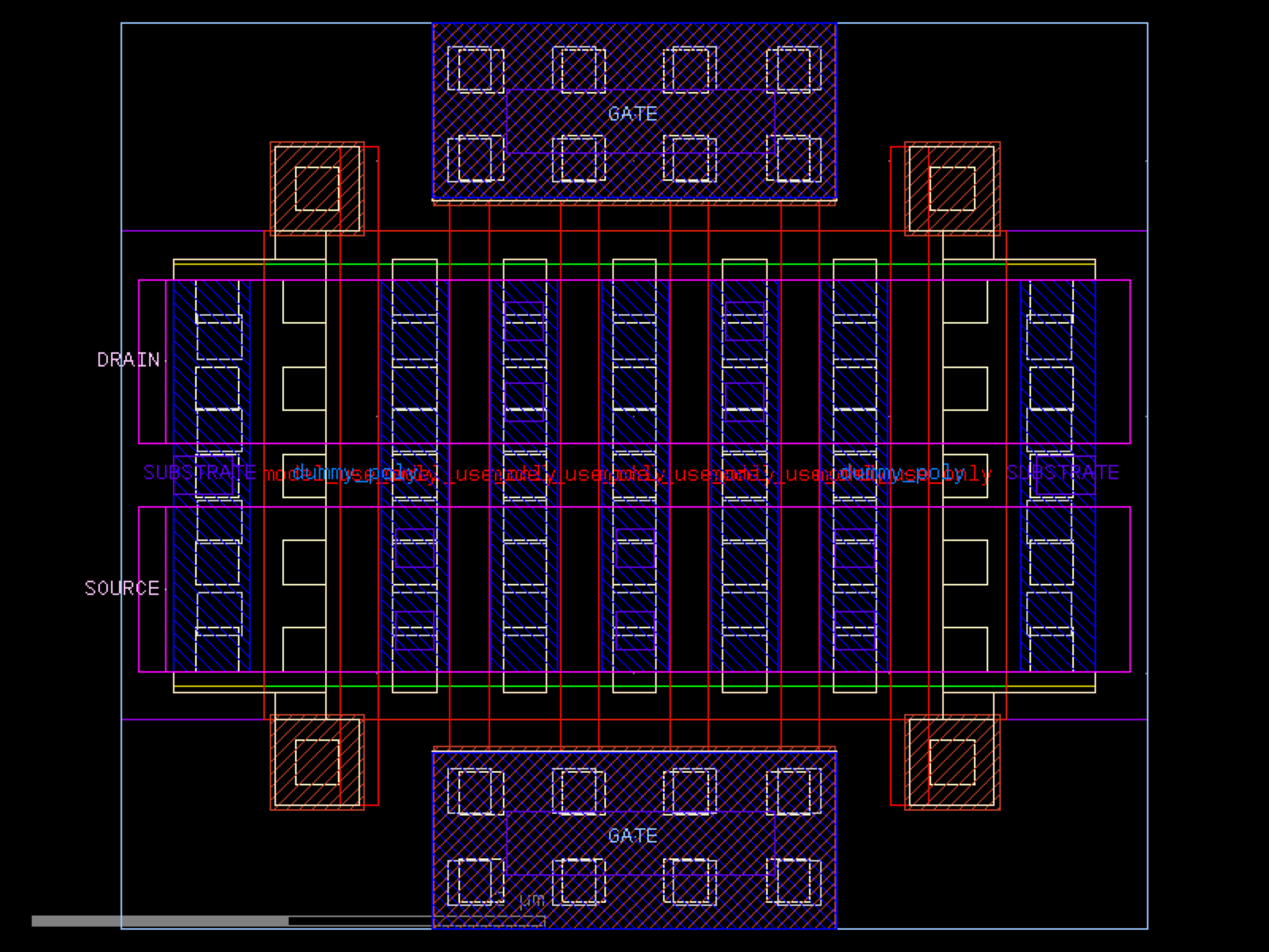 sky130.cells.sky130_fd_pr__rf_nfet_01v8_lvt_bM04W1p65L0p15# sky130.cells.sky130_fd_pr__rf_nfet_01v8_lvt_bM04W1p65L0p15()[source]# Returns sky130_fd_pr__rf_nfet_01v8_lvt_bM04W1p65L0p15 fixed cell. import sky130 c = sky130.components.sky130_fd_pr__rf_nfet_01v8_lvt_bM04W1p65L0p15() c.plot() (Source code, png, hires.png, pdf) Return type: Component