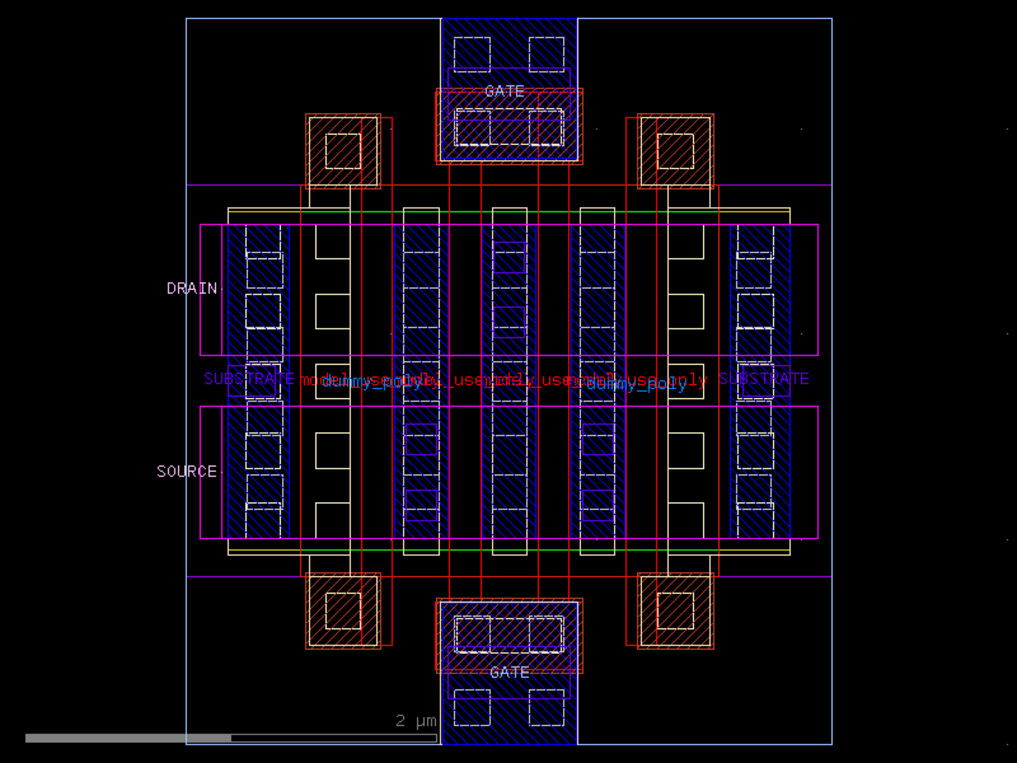 sky130.cells.sky130_fd_pr__rf_nfet_01v8_lvt_cM02W1p65L0p15# sky130.cells.sky130_fd_pr__rf_nfet_01v8_lvt_cM02W1p65L0p15()[source]# Returns sky130_fd_pr__rf_nfet_01v8_lvt_cM02W1p65L0p15 fixed cell. import sky130 c = sky130.components.sky130_fd_pr__rf_nfet_01v8_lvt_cM02W1p65L0p15() c.plot() (Source code, png, hires.png, pdf) Return type: Component