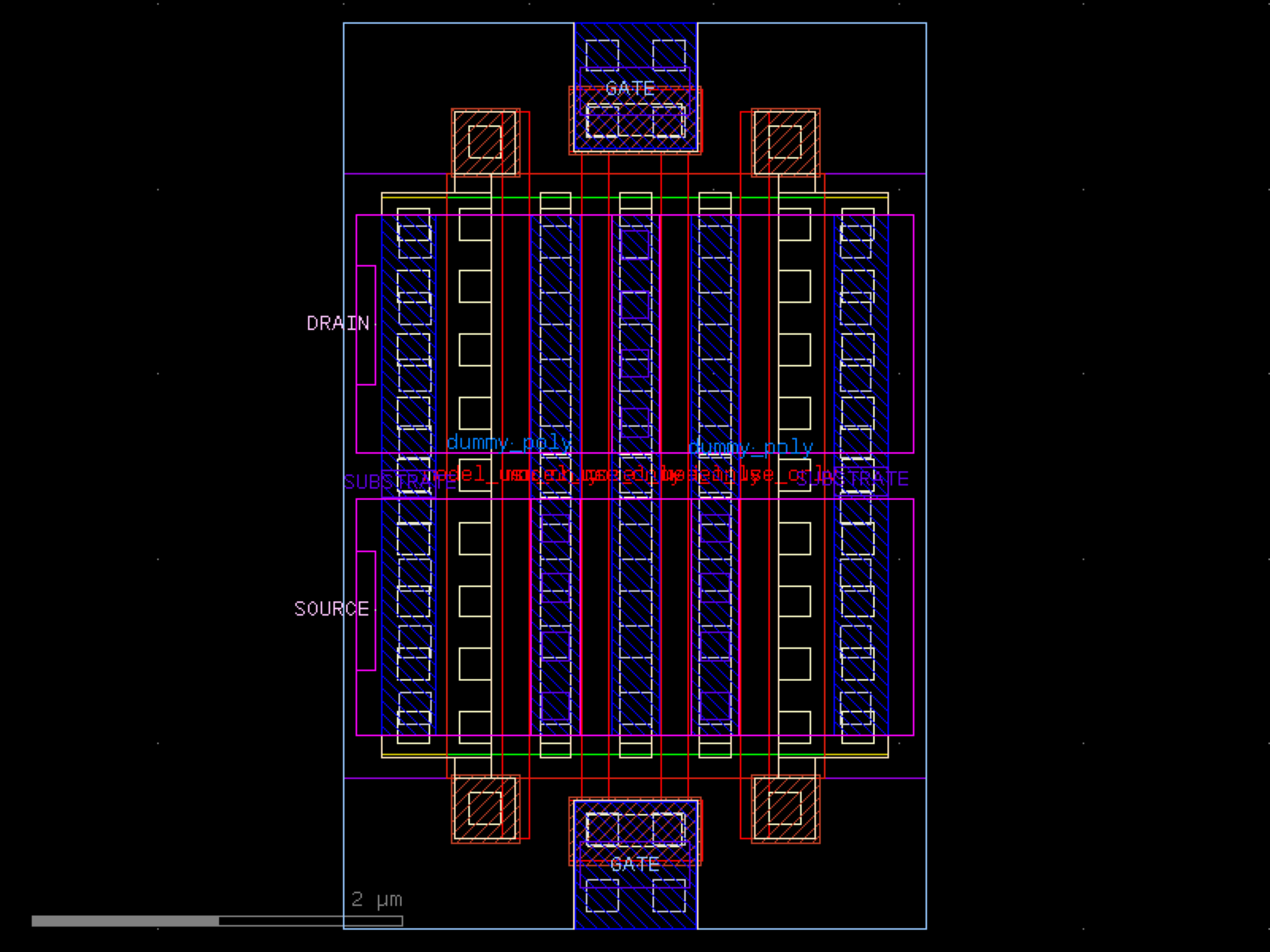 sky130.cells.sky130_fd_pr__rf_nfet_01v8_lvt_cM02W3p00L0p15# sky130.cells.sky130_fd_pr__rf_nfet_01v8_lvt_cM02W3p00L0p15()[source]# Returns sky130_fd_pr__rf_nfet_01v8_lvt_cM02W3p00L0p15 fixed cell. import sky130 c = sky130.components.sky130_fd_pr__rf_nfet_01v8_lvt_cM02W3p00L0p15() c.plot() (Source code, png, hires.png, pdf) Return type: Component
