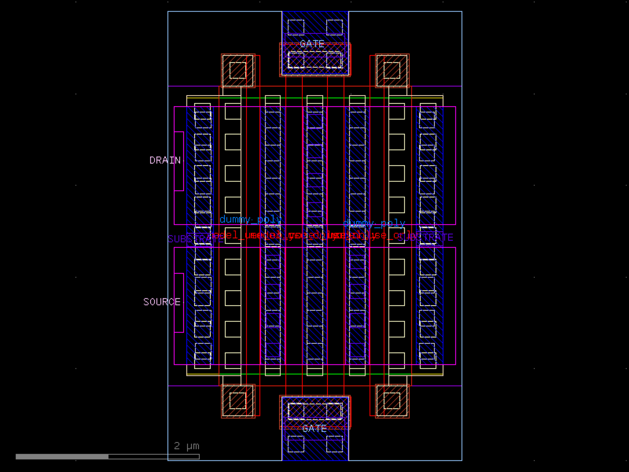 sky130.cells.sky130_fd_pr__rf_nfet_01v8_lvt_cM02W3p00L0p18# sky130.cells.sky130_fd_pr__rf_nfet_01v8_lvt_cM02W3p00L0p18()[source]# Returns sky130_fd_pr__rf_nfet_01v8_lvt_cM02W3p00L0p18 fixed cell. import sky130 c = sky130.components.sky130_fd_pr__rf_nfet_01v8_lvt_cM02W3p00L0p18() c.plot() (Source code, png, hires.png, pdf) Return type: Component