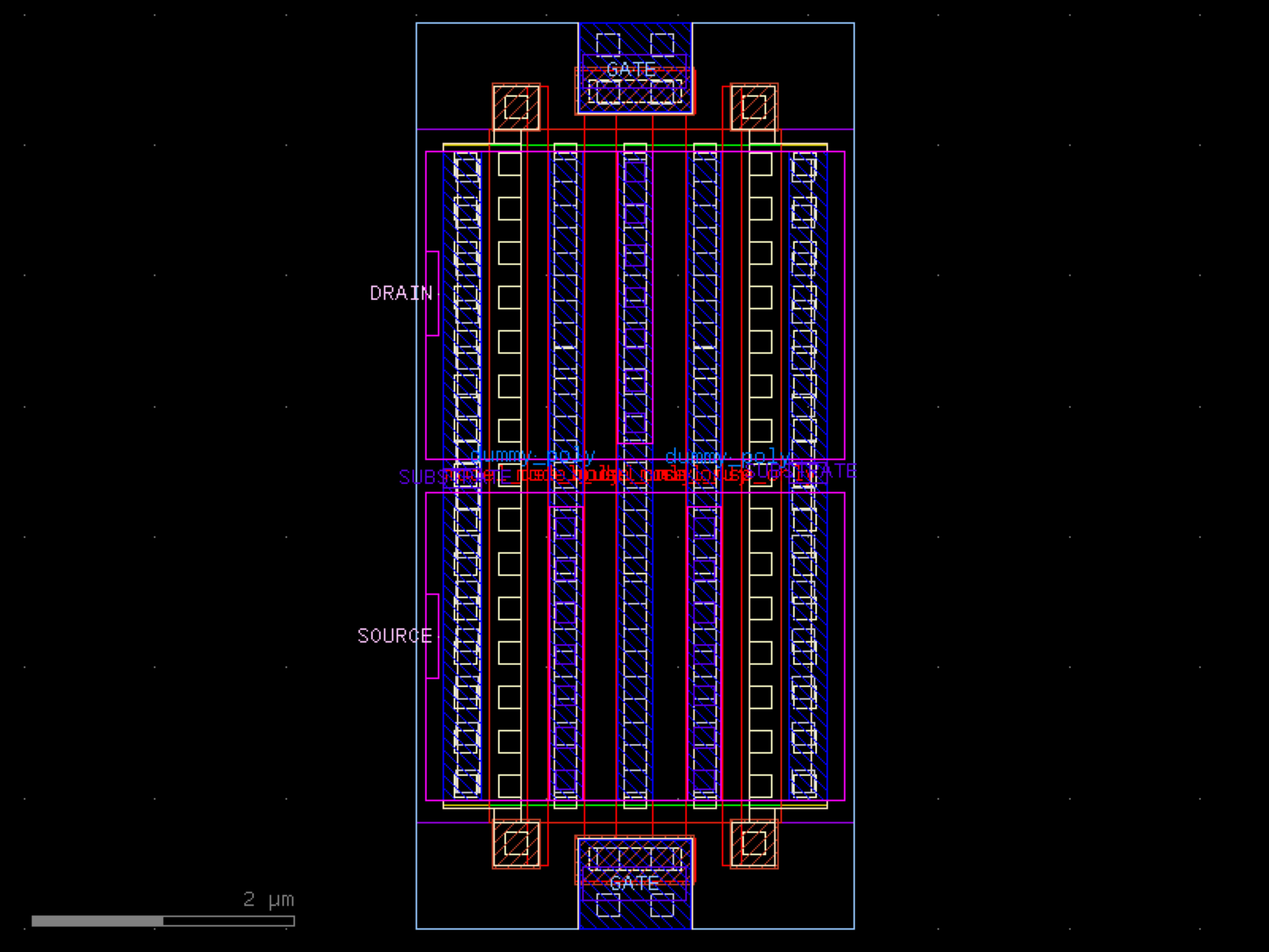 sky130.cells.sky130_fd_pr__rf_nfet_01v8_lvt_cM02W5p00L0p25# sky130.cells.sky130_fd_pr__rf_nfet_01v8_lvt_cM02W5p00L0p25()[source]# Returns sky130_fd_pr__rf_nfet_01v8_lvt_cM02W5p00L0p25 fixed cell. import sky130 c = sky130.components.sky130_fd_pr__rf_nfet_01v8_lvt_cM02W5p00L0p25() c.plot() (Source code, png, hires.png, pdf) Return type: Component