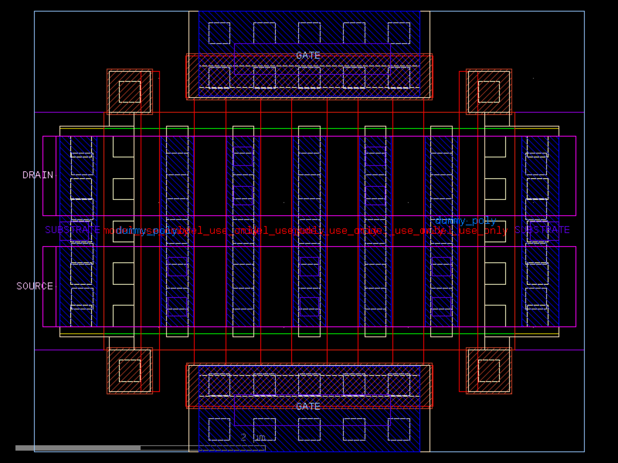 sky130.cells.sky130_fd_pr__rf_nfet_01v8_lvt_cM04W1p65L0p25# sky130.cells.sky130_fd_pr__rf_nfet_01v8_lvt_cM04W1p65L0p25()[source]# Returns sky130_fd_pr__rf_nfet_01v8_lvt_cM04W1p65L0p25 fixed cell. import sky130 c = sky130.components.sky130_fd_pr__rf_nfet_01v8_lvt_cM04W1p65L0p25() c.plot() (Source code, png, hires.png, pdf) Return type: Component