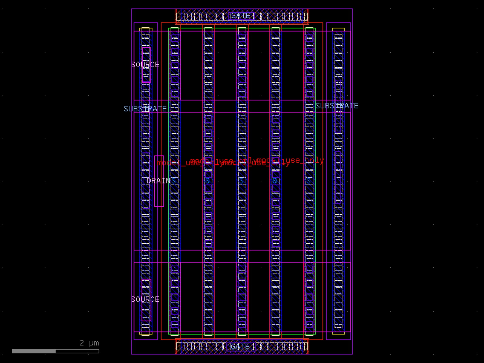 sky130.cells.sky130_fd_pr__rf_nfet_g5v0d10v5_aM04W7p00L0p50# sky130.cells.sky130_fd_pr__rf_nfet_g5v0d10v5_aM04W7p00L0p50()[source]# Returns sky130_fd_pr__rf_nfet_g5v0d10v5_aM04W7p00L0p50 fixed cell. import sky130 c = sky130.components.sky130_fd_pr__rf_nfet_g5v0d10v5_aM04W7p00L0p50() c.plot() (Source code, png, hires.png, pdf) Return type: Component