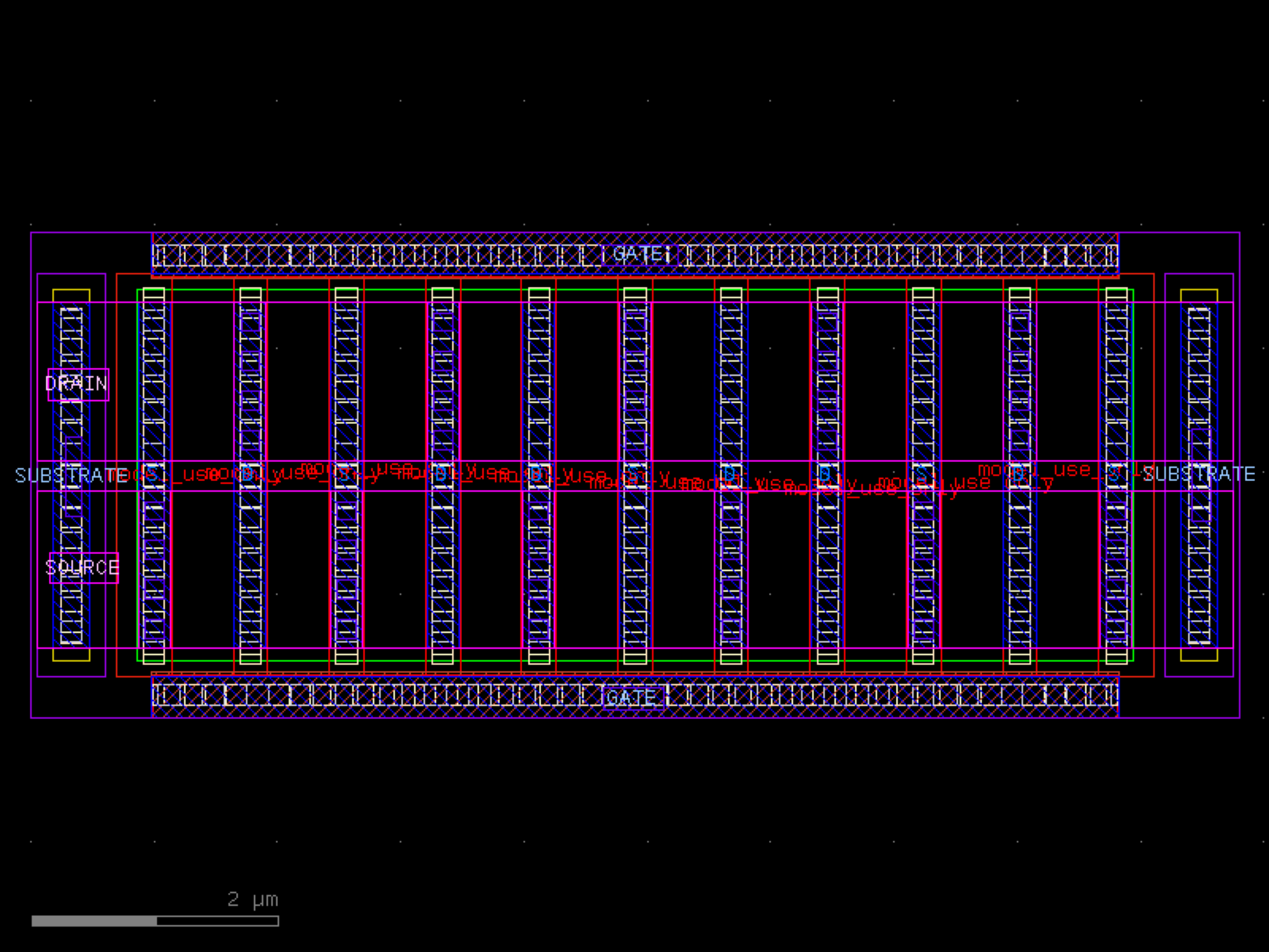 sky130.cells.sky130_fd_pr__rf_nfet_g5v0d10v5_aM10W3p00L0p50# sky130.cells.sky130_fd_pr__rf_nfet_g5v0d10v5_aM10W3p00L0p50()[source]# Returns sky130_fd_pr__rf_nfet_g5v0d10v5_aM10W3p00L0p50 fixed cell. import sky130 c = sky130.components.sky130_fd_pr__rf_nfet_g5v0d10v5_aM10W3p00L0p50() c.plot() (Source code, png, hires.png, pdf) Return type: Component