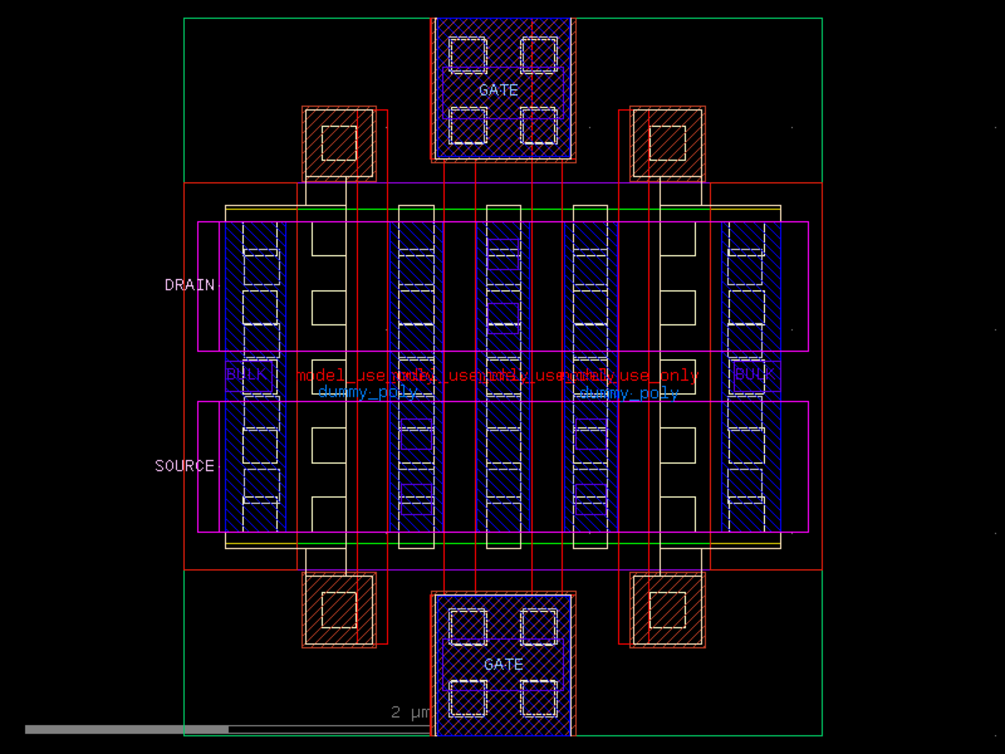 sky130.cells.sky130_fd_pr__rf_pfet_01v8_bM02W1p65L0p15# sky130.cells.sky130_fd_pr__rf_pfet_01v8_bM02W1p65L0p15()[source]# Returns sky130_fd_pr__rf_pfet_01v8_bM02W1p65L0p15 fixed cell. import sky130 c = sky130.components.sky130_fd_pr__rf_pfet_01v8_bM02W1p65L0p15() c.plot() (Source code, png, hires.png, pdf) Return type: Component