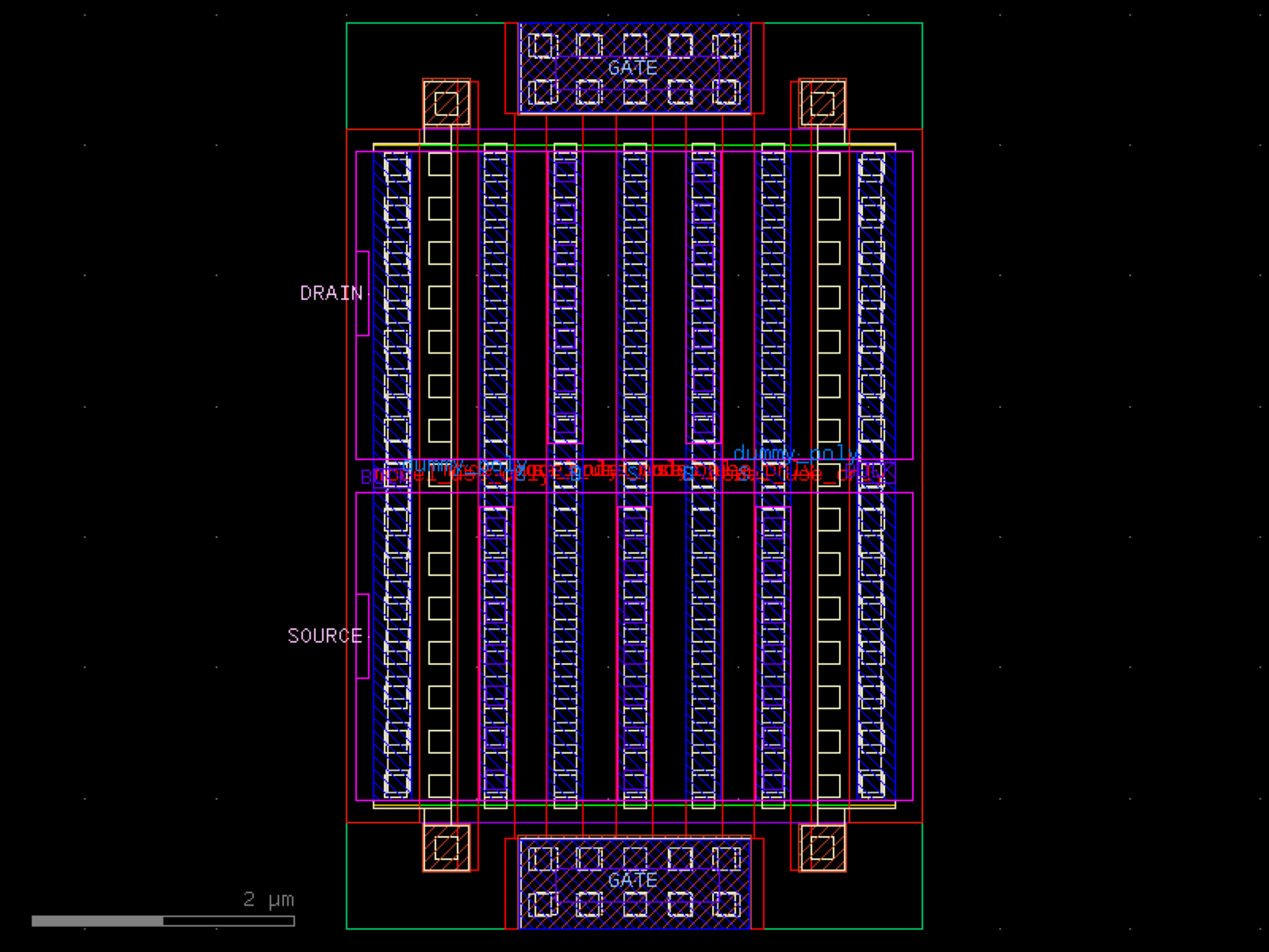 sky130.cells.sky130_fd_pr__rf_pfet_01v8_bM04W5p00L0p25# sky130.cells.sky130_fd_pr__rf_pfet_01v8_bM04W5p00L0p25()[source]# Returns sky130_fd_pr__rf_pfet_01v8_bM04W5p00L0p25 fixed cell. import sky130 c = sky130.components.sky130_fd_pr__rf_pfet_01v8_bM04W5p00L0p25() c.plot() (Source code, png, hires.png, pdf) Return type: Component