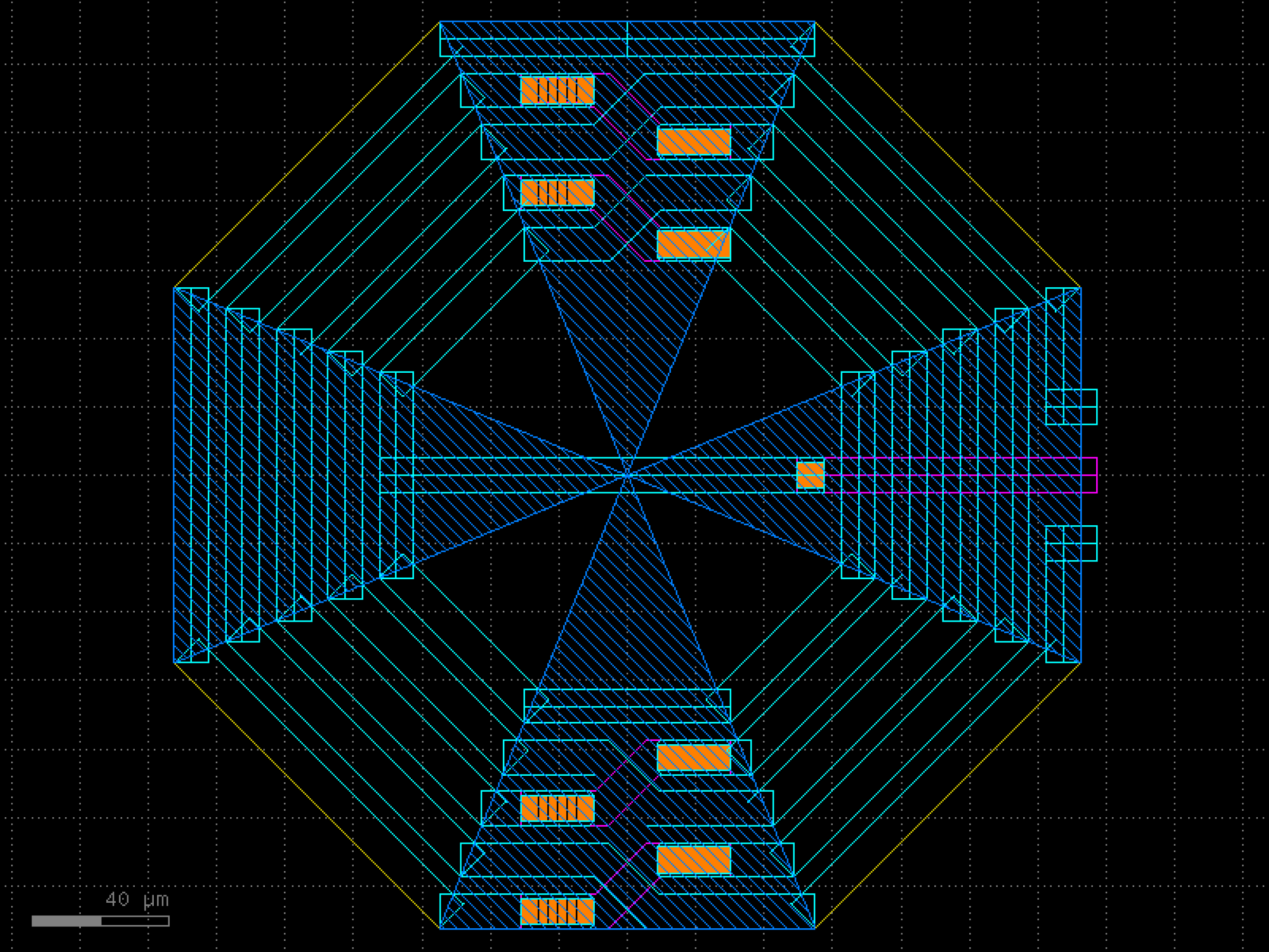 sky130.cells.sky130_fd_pr__rf_test_coil2# sky130.cells.sky130_fd_pr__rf_test_coil2()[source]# Returns sky130_fd_pr__rf_test_coil2 fixed cell. import sky130 c = sky130.components.sky130_fd_pr__rf_test_coil2() c.plot() (Source code, png, hires.png, pdf) Return type: Component