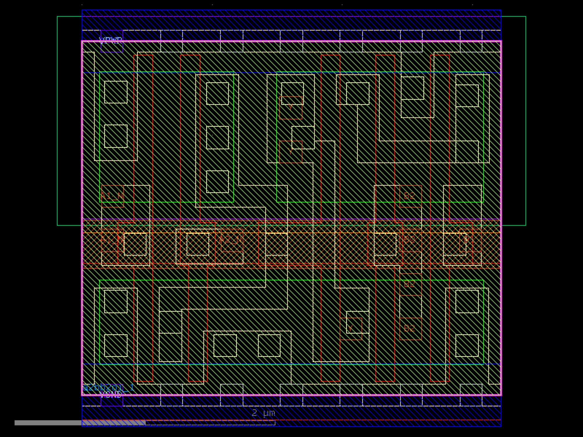 sky130.cells.sky130_fd_sc_hd__a2bb2oi_1# sky130.cells.sky130_fd_sc_hd__a2bb2oi_1()[source]# Returns sky130_fd_sc_hd__a2bb2oi_1 fixed cell. import sky130 c = sky130.components.sky130_fd_sc_hd__a2bb2oi_1() c.plot() (Source code, png, hires.png, pdf) Return type: Component