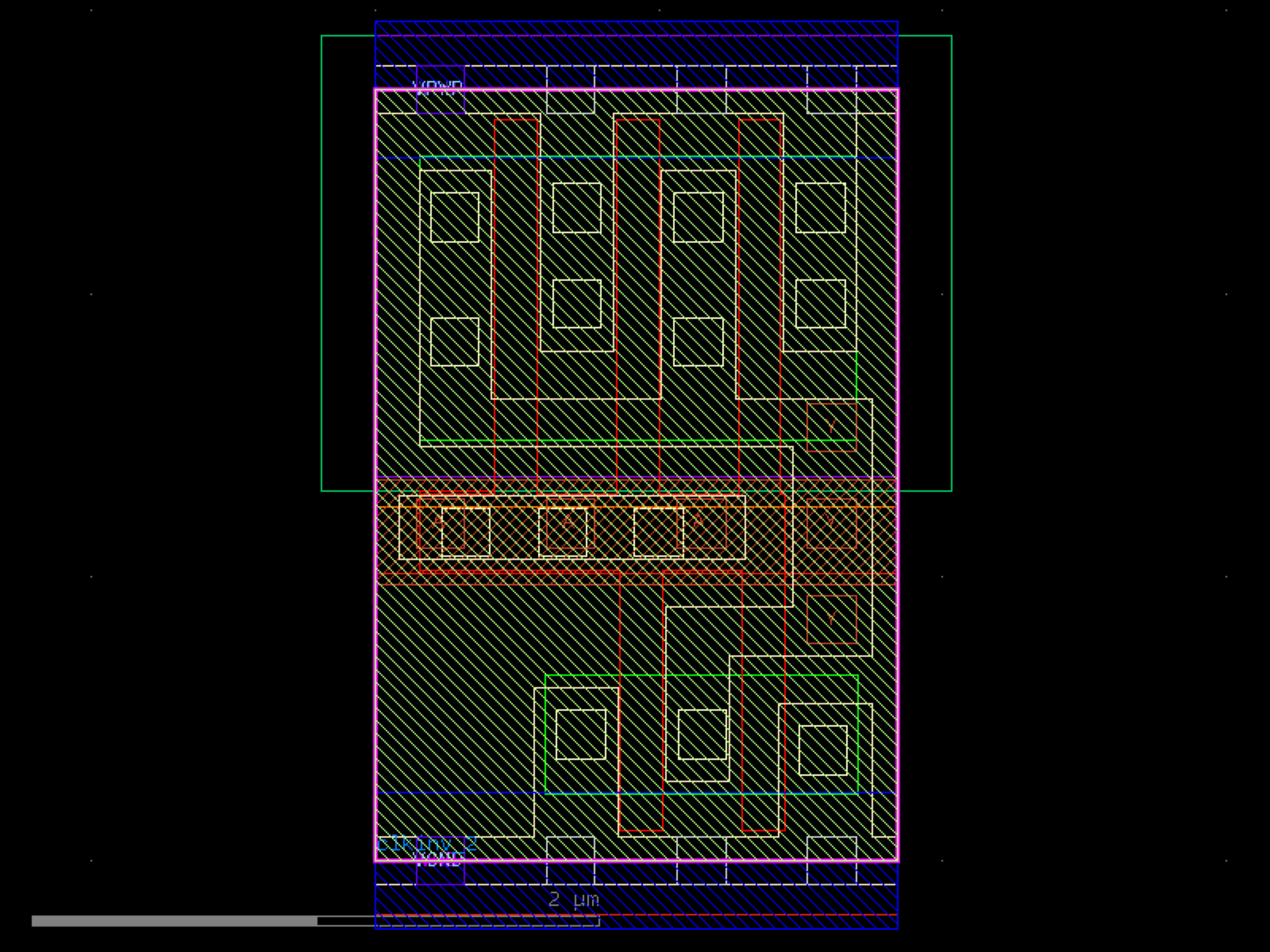 sky130.cells.sky130_fd_sc_hd__clkinv_2# sky130.cells.sky130_fd_sc_hd__clkinv_2()[source]# Returns sky130_fd_sc_hd__clkinv_2 fixed cell. import sky130 c = sky130.components.sky130_fd_sc_hd__clkinv_2() c.plot() (Source code, png, hires.png, pdf) Return type: Component