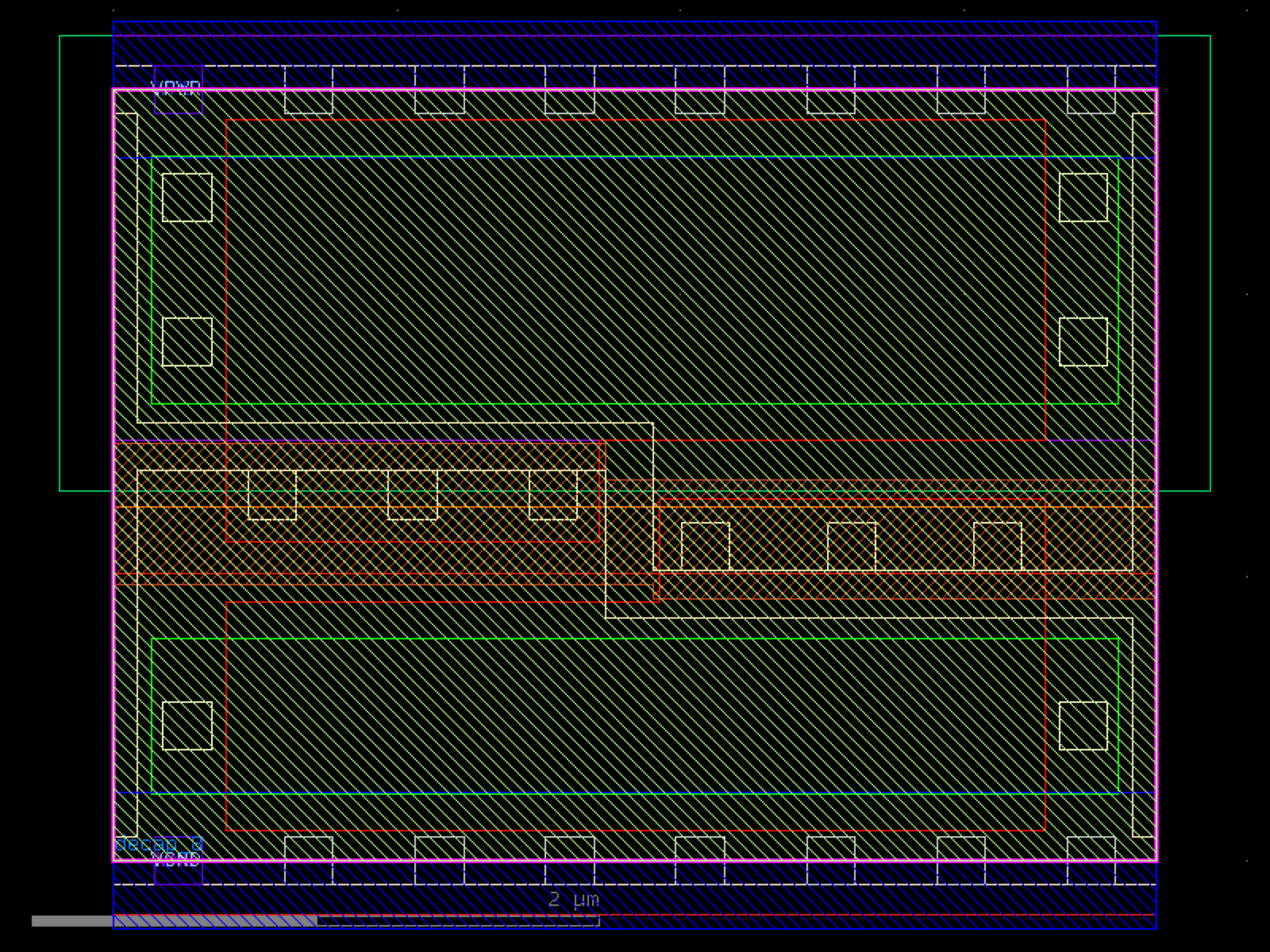 sky130.cells.sky130_fd_sc_hd__decap_8# sky130.cells.sky130_fd_sc_hd__decap_8()[source]# Returns sky130_fd_sc_hd__decap_8 fixed cell. import sky130 c = sky130.components.sky130_fd_sc_hd__decap_8() c.plot() (Source code, png, hires.png, pdf) Return type: Component