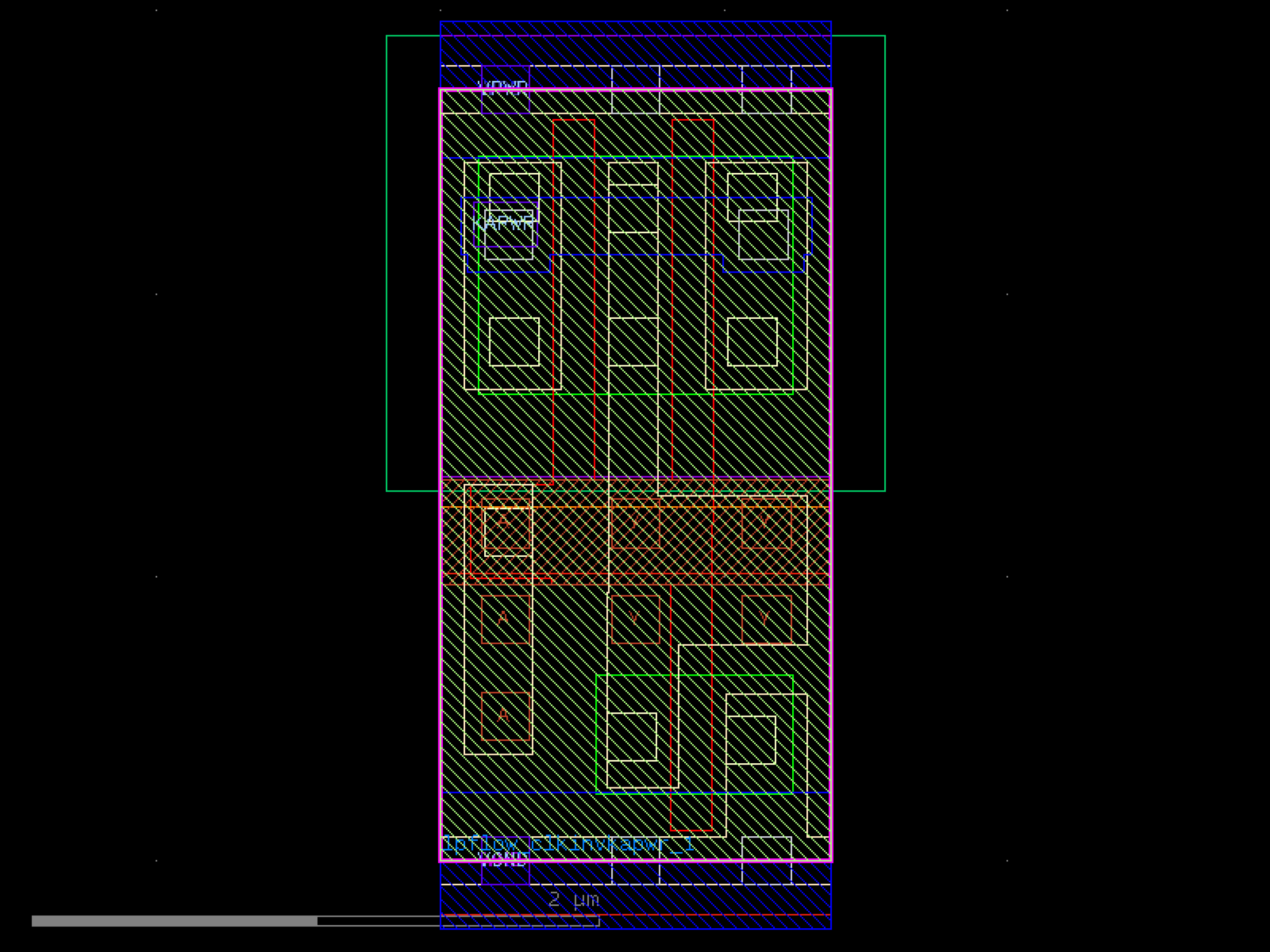sky130.cells.sky130_fd_sc_hd__lpflow_clkinvkapwr_1# sky130.cells.sky130_fd_sc_hd__lpflow_clkinvkapwr_1()[source]# Returns sky130_fd_sc_hd__lpflow_clkinvkapwr_1 fixed cell. import sky130 c = sky130.components.sky130_fd_sc_hd__lpflow_clkinvkapwr_1() c.plot() (Source code, png, hires.png, pdf) Return type: Component