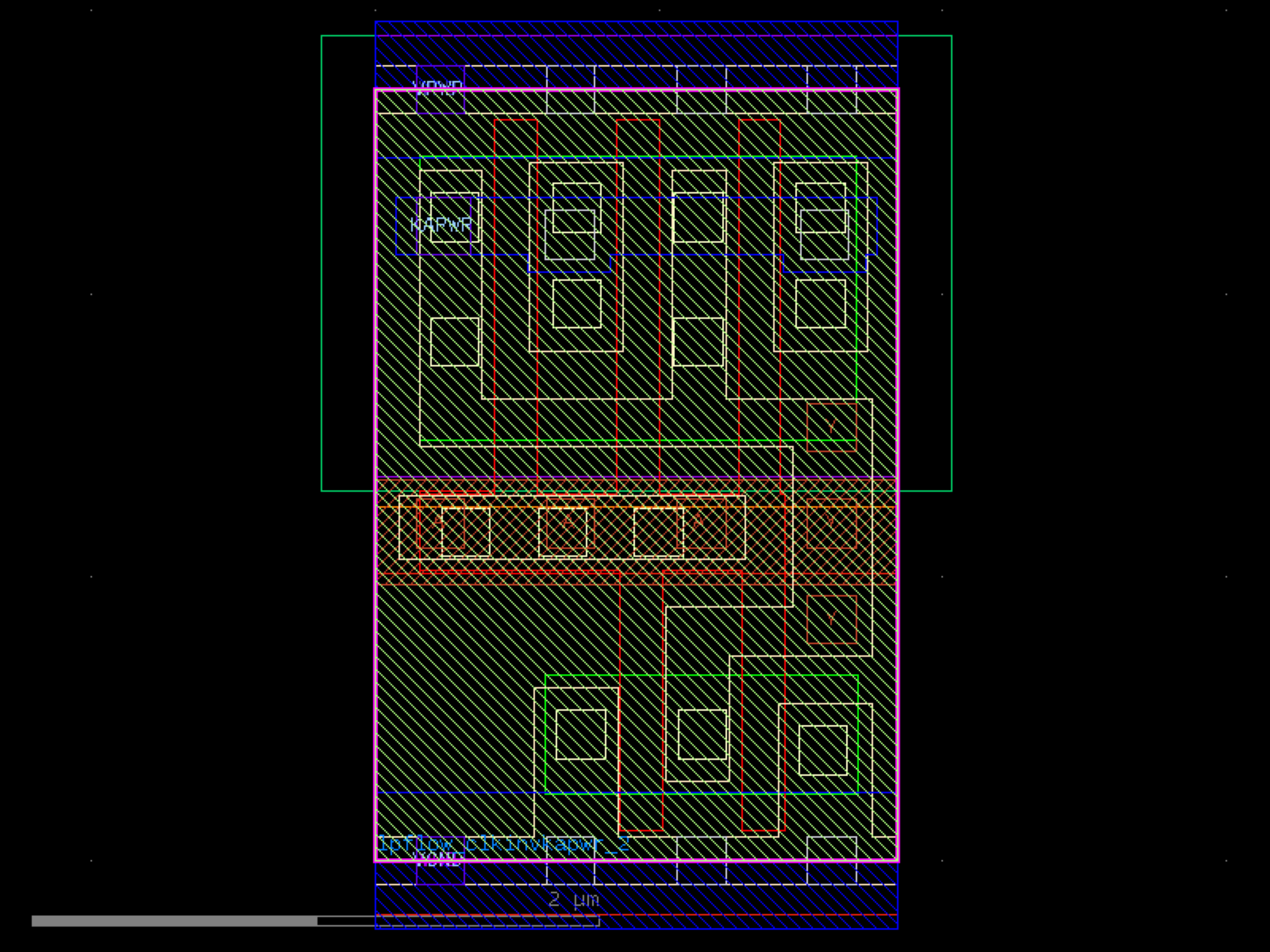 sky130.cells.sky130_fd_sc_hd__lpflow_clkinvkapwr_2# sky130.cells.sky130_fd_sc_hd__lpflow_clkinvkapwr_2()[source]# Returns sky130_fd_sc_hd__lpflow_clkinvkapwr_2 fixed cell. import sky130 c = sky130.components.sky130_fd_sc_hd__lpflow_clkinvkapwr_2() c.plot() (Source code, png, hires.png, pdf) Return type: Component