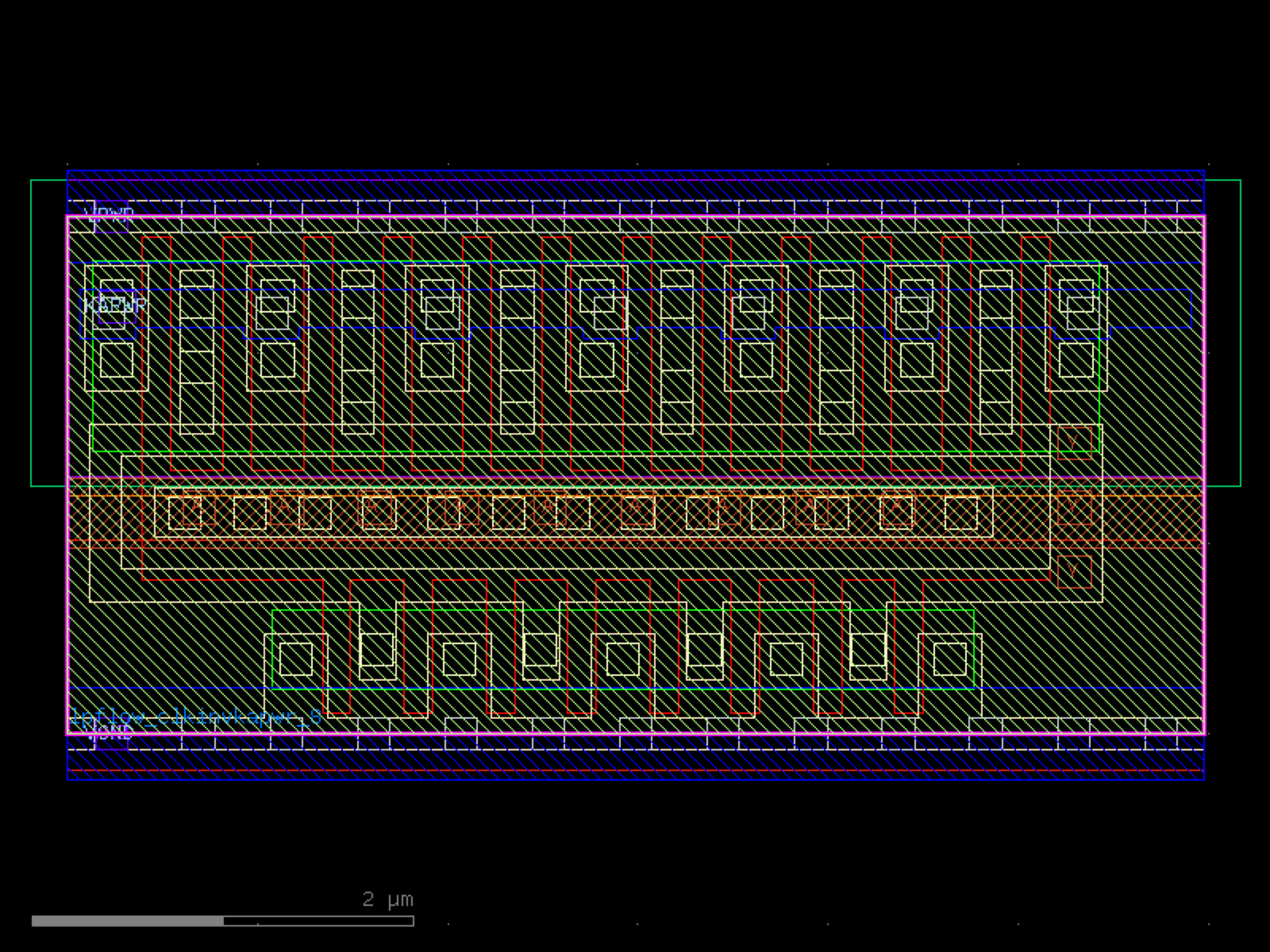 sky130.cells.sky130_fd_sc_hd__lpflow_clkinvkapwr_8# sky130.cells.sky130_fd_sc_hd__lpflow_clkinvkapwr_8()[source]# Returns sky130_fd_sc_hd__lpflow_clkinvkapwr_8 fixed cell. import sky130 c = sky130.components.sky130_fd_sc_hd__lpflow_clkinvkapwr_8() c.plot() (Source code, png, hires.png, pdf) Return type: Component
