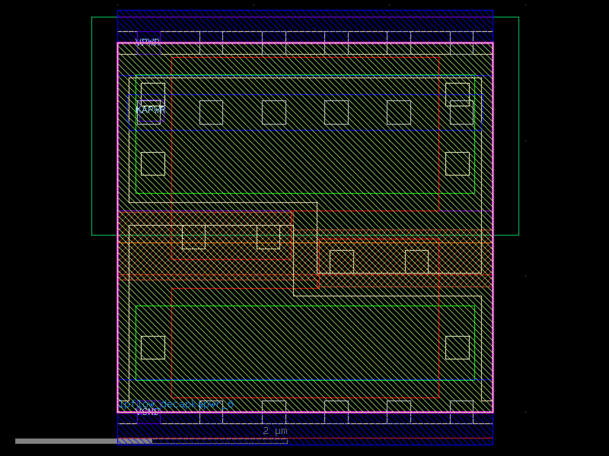 sky130.cells.sky130_fd_sc_hd__lpflow_decapkapwr_6# sky130.cells.sky130_fd_sc_hd__lpflow_decapkapwr_6()[source]# Returns sky130_fd_sc_hd__lpflow_decapkapwr_6 fixed cell. import sky130 c = sky130.components.sky130_fd_sc_hd__lpflow_decapkapwr_6() c.plot() (Source code, png, hires.png, pdf) Return type: Component