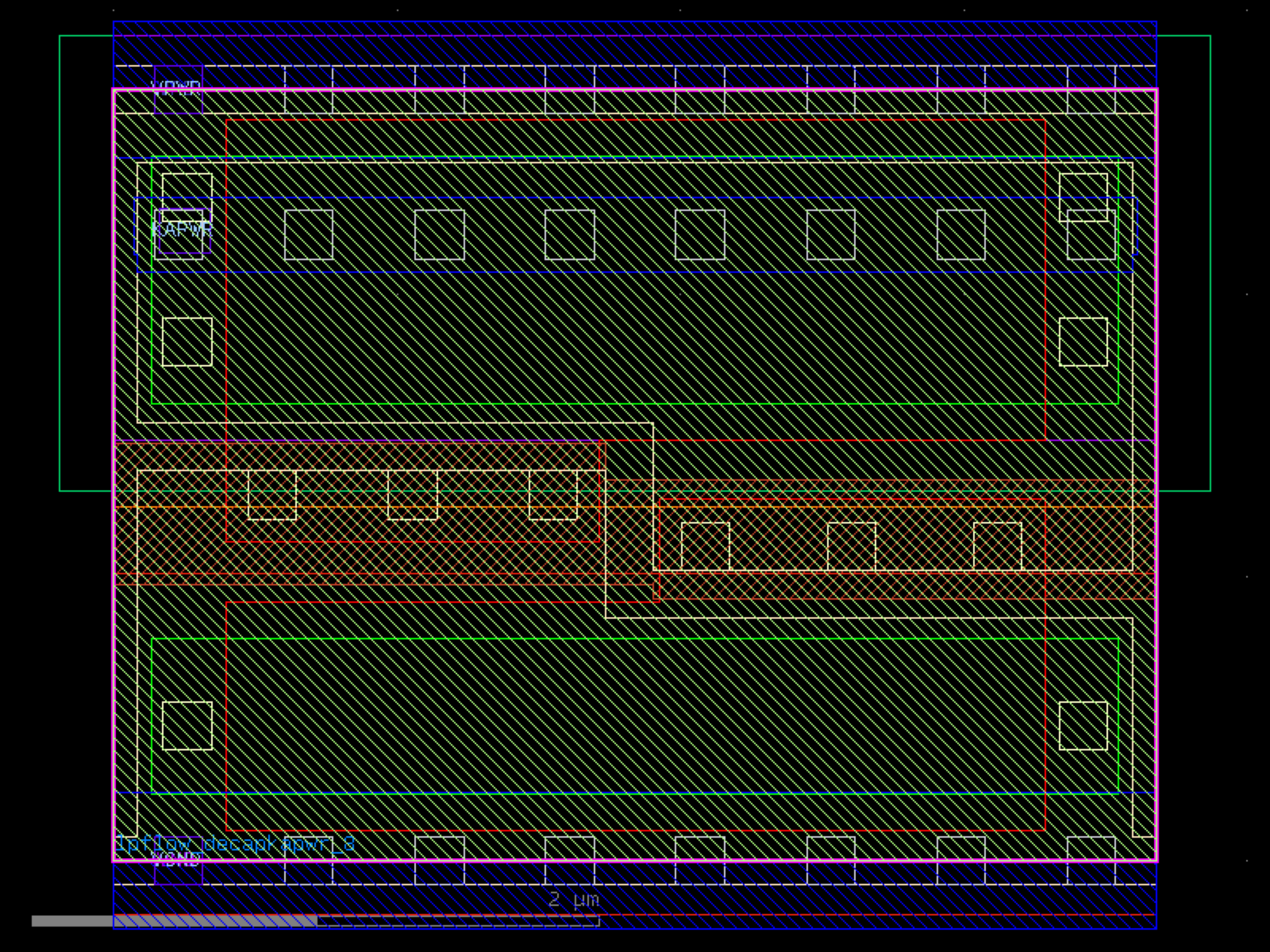 sky130.cells.sky130_fd_sc_hd__lpflow_decapkapwr_8# sky130.cells.sky130_fd_sc_hd__lpflow_decapkapwr_8()[source]# Returns sky130_fd_sc_hd__lpflow_decapkapwr_8 fixed cell. import sky130 c = sky130.components.sky130_fd_sc_hd__lpflow_decapkapwr_8() c.plot() (Source code, png, hires.png, pdf) Return type: Component