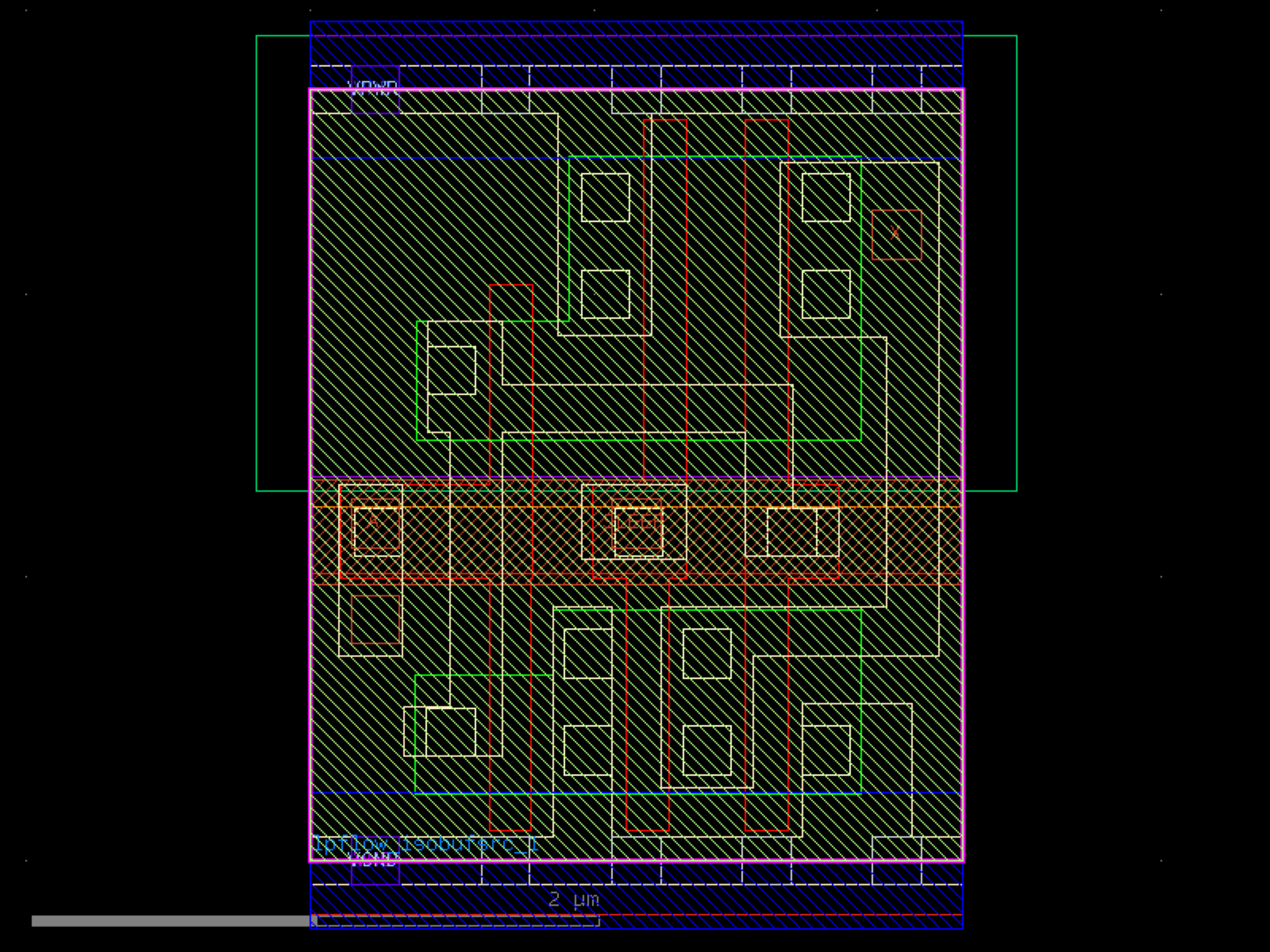 sky130.cells.sky130_fd_sc_hd__lpflow_isobufsrc_1# sky130.cells.sky130_fd_sc_hd__lpflow_isobufsrc_1()[source]# Returns sky130_fd_sc_hd__lpflow_isobufsrc_1 fixed cell. import sky130 c = sky130.components.sky130_fd_sc_hd__lpflow_isobufsrc_1() c.plot() (Source code, png, hires.png, pdf) Return type: Component