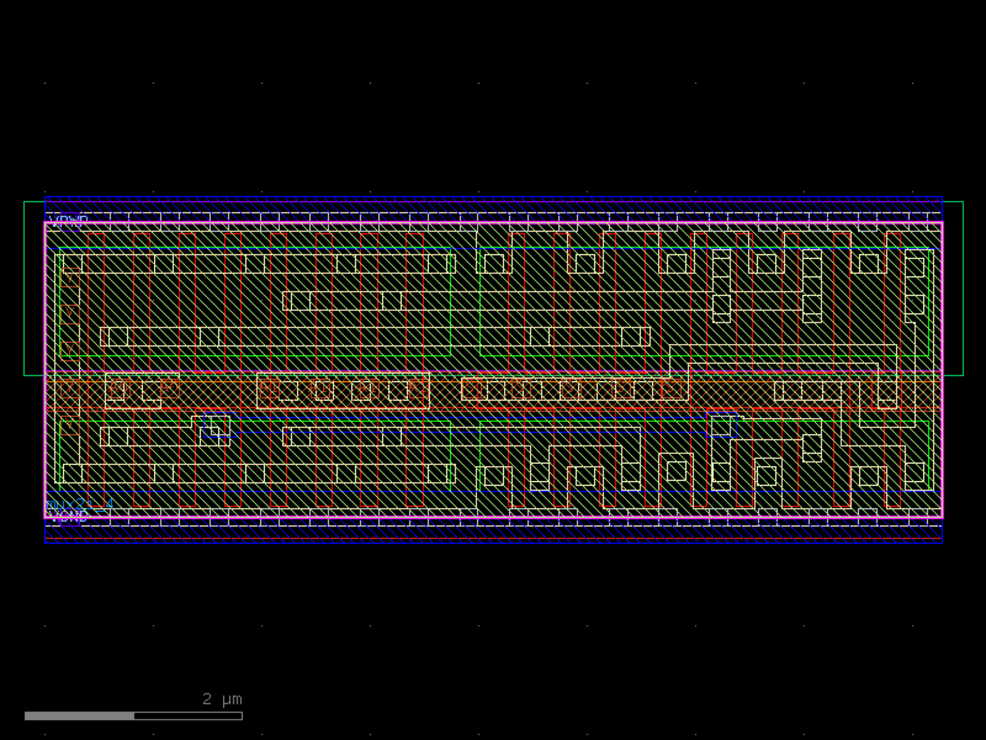 sky130.cells.sky130_fd_sc_hd__mux2i_4# sky130.cells.sky130_fd_sc_hd__mux2i_4()[source]# Returns sky130_fd_sc_hd__mux2i_4 fixed cell. import sky130 c = sky130.components.sky130_fd_sc_hd__mux2i_4() c.plot() (Source code, png, hires.png, pdf) Return type: Component