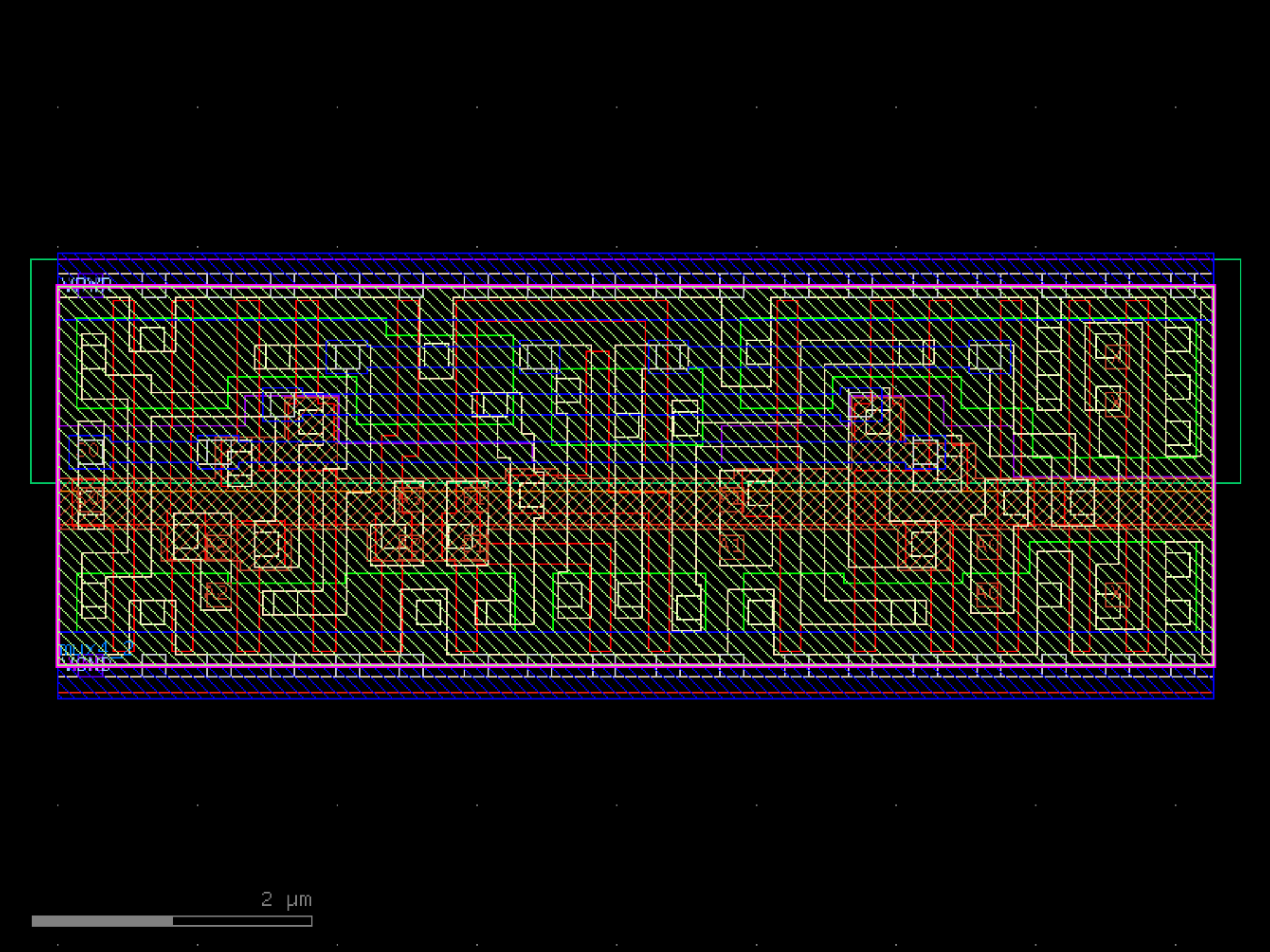 sky130.cells.sky130_fd_sc_hd__mux4_2# sky130.cells.sky130_fd_sc_hd__mux4_2()[source]# Returns sky130_fd_sc_hd__mux4_2 fixed cell. import sky130 c = sky130.components.sky130_fd_sc_hd__mux4_2() c.plot() (Source code, png, hires.png, pdf) Return type: Component