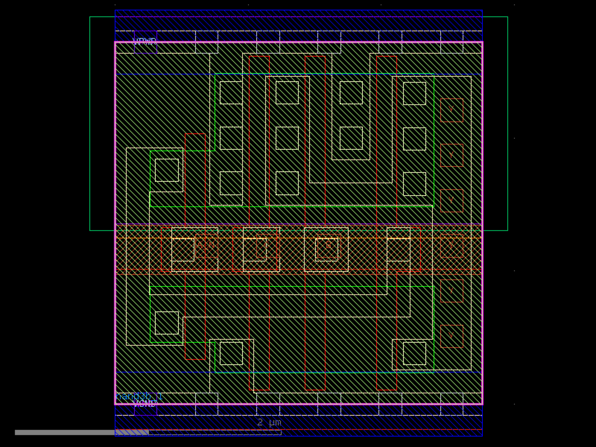 sky130.cells.sky130_fd_sc_hd__nand3b_1# sky130.cells.sky130_fd_sc_hd__nand3b_1()[source]# Returns sky130_fd_sc_hd__nand3b_1 fixed cell. import sky130 c = sky130.components.sky130_fd_sc_hd__nand3b_1() c.plot() (Source code, png, hires.png, pdf) Return type: Component