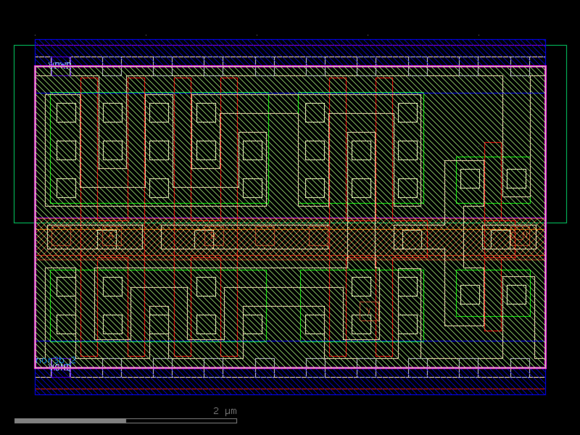 sky130.cells.sky130_fd_sc_hd__nor3b_2# sky130.cells.sky130_fd_sc_hd__nor3b_2()[source]# Returns sky130_fd_sc_hd__nor3b_2 fixed cell. import sky130 c = sky130.components.sky130_fd_sc_hd__nor3b_2() c.plot() (Source code, png, hires.png, pdf) Return type: Component