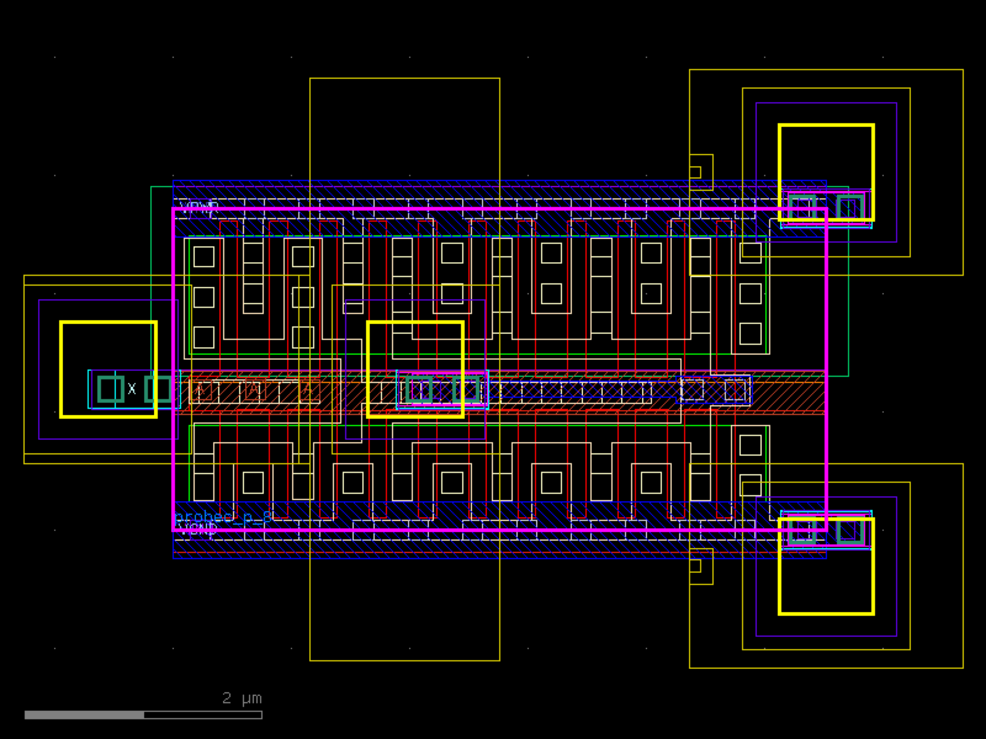sky130.cells.sky130_fd_sc_hd__probec_p_8# sky130.cells.sky130_fd_sc_hd__probec_p_8()[source]# Returns sky130_fd_sc_hd__probec_p_8 fixed cell. import sky130 c = sky130.components.sky130_fd_sc_hd__probec_p_8() c.plot() (Source code, png, hires.png, pdf) Return type: Component