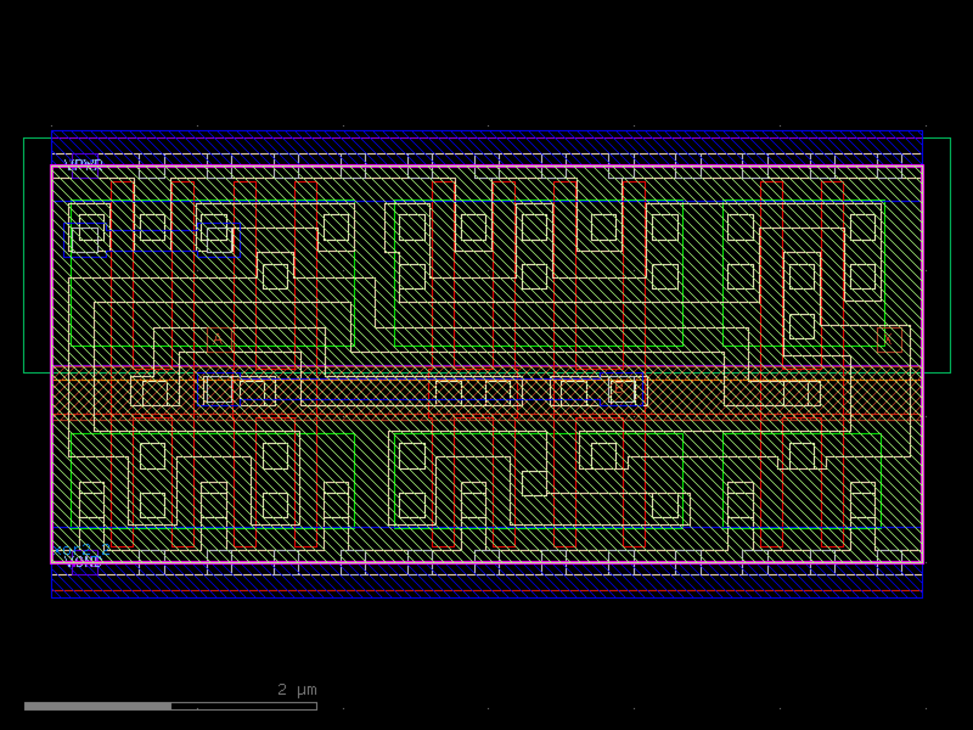 sky130.cells.sky130_fd_sc_hd__xor2_2# sky130.cells.sky130_fd_sc_hd__xor2_2()[source]# Returns sky130_fd_sc_hd__xor2_2 fixed cell. import sky130 c = sky130.components.sky130_fd_sc_hd__xor2_2() c.plot() (Source code, png, hires.png, pdf) Return type: Component